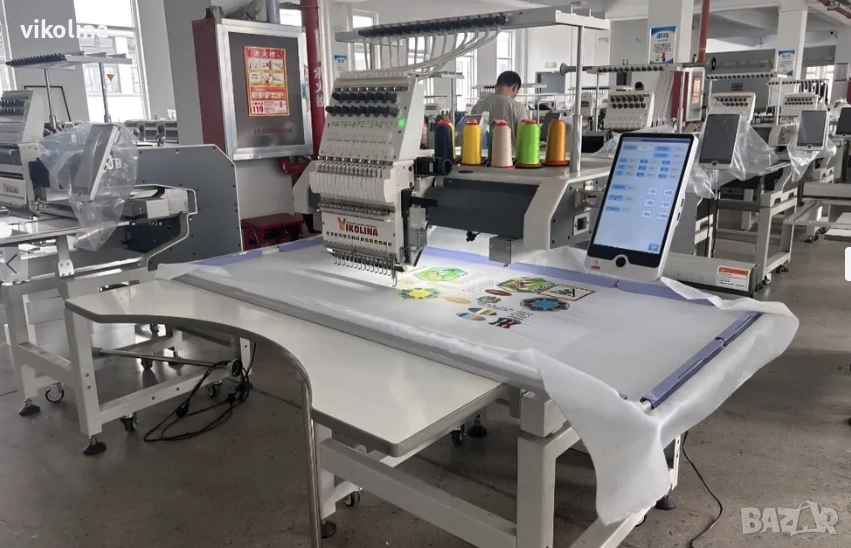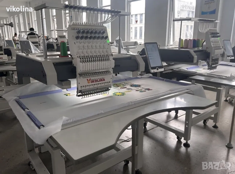 Докато машината бродира върху единия, във втория може да се позиционира следващият модел.