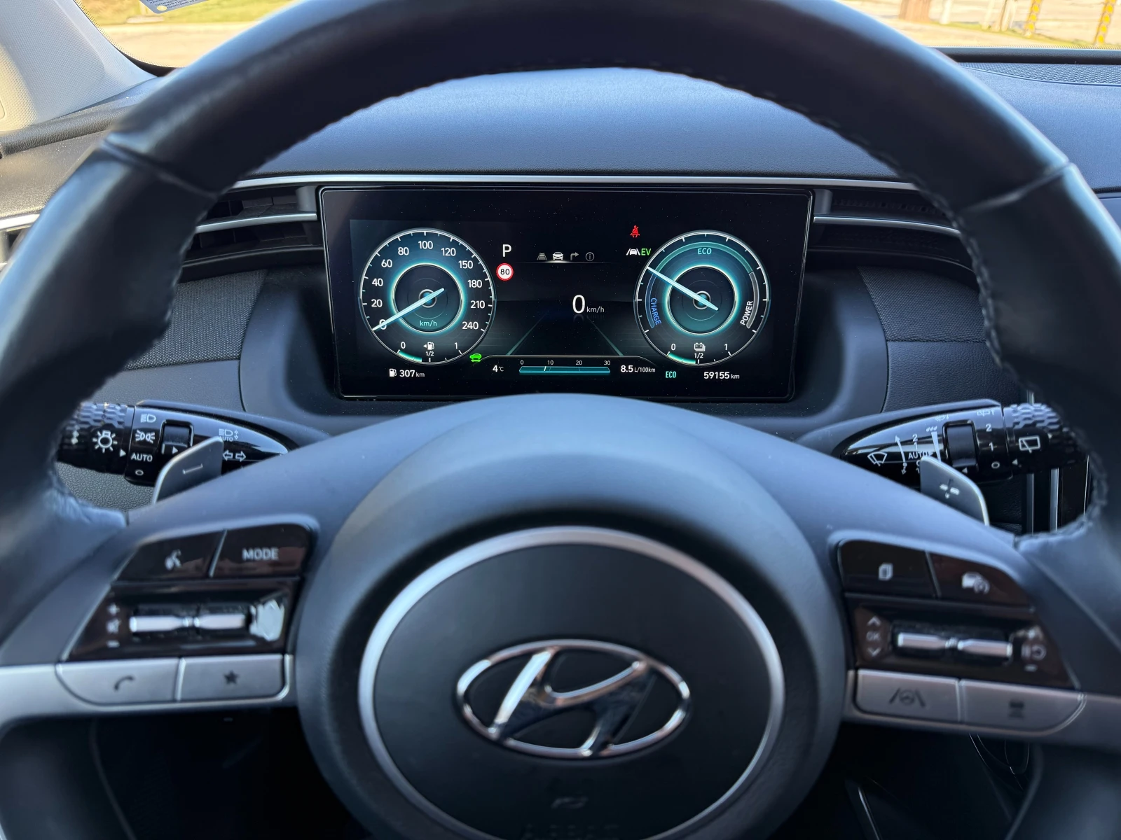 Hyundai Tucson 1. 6 T-GDi, 230 к. с. , 4х4, Hybrid. Автомобилът е гаранционен (5 год. на автомобила и 8 год. на батерията), с пълна сервизна история, обслужван без прекъсвания според заложените интервали от производителя, единствено в оторизиран Хюндай сервиз. Последно обслужен през 09. 2025год. на 58 639км. Нивото на оборудване е от висок клас. Включени са екстри като: безключов достъп до автомобила (keyless), LED дневни и LED къси светлини, отопление на предните седалки, отопление на волана, пера за смяна на скоростите от волана, Premium sound system с 8 високоговорителя, 10. 0 инча сензорен дисплей, безжично зареждане на мобилни телефони, Apple CarPlay и Android Auto, фабрично тонирани странични и задни стъкла, електрическо отваряне/затваряне на вратата на багажника, асистент за разпознаване на пътни знаци, асистент за поддържане на лентата на движение, система предупреждение за челен сблъсък, система за наблюдение на невидимата зона blind spot , преден и заден парктроник, камера за заден ход, навигационна система, теглич и др. Има платени застраховки Каско и Гражданска отговорност. Чисто нови зимни гуми. В перфектно техническо и визуално състояние. При желание може да бъде направена диагностика в сервиз на Hyundai София.