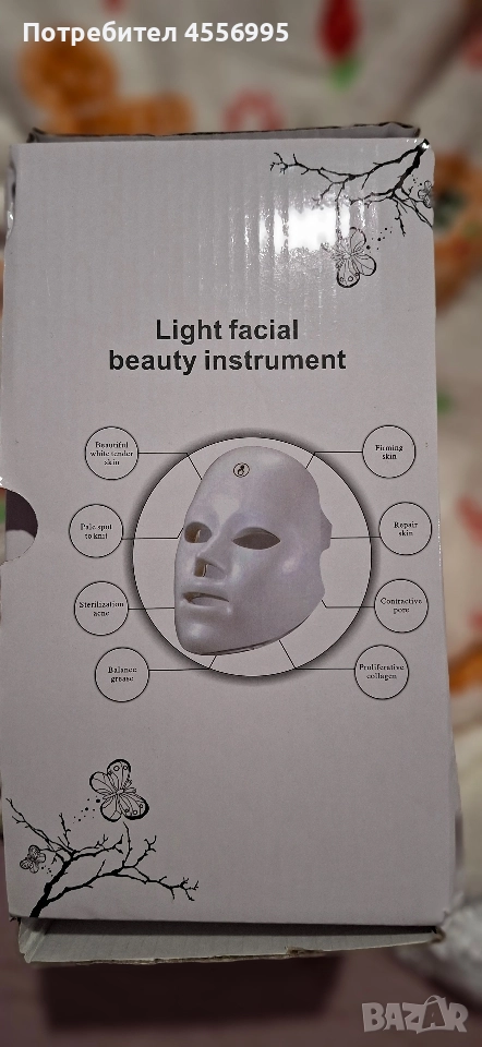 Продавам LED светлинна маска за лице (Light Facial Beauty Instrument), подходяща за домашна козметична грижа. Работи със 7 цвята LED светлина, всеки с различно действие върху кожата.
