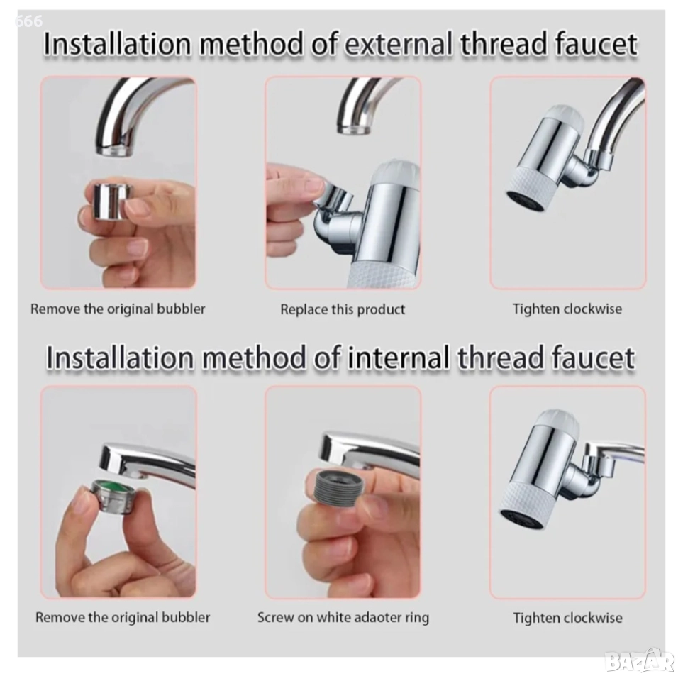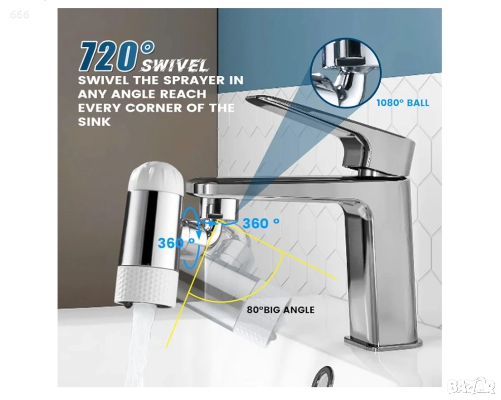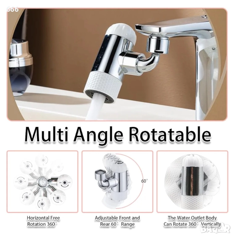 🔄Пълно покритие с въртящ се дизайн – С две въртящи се на 360° части и една въртяща се на 60° част, този аератор за кухненски кран ви позволява бързо да променяте посоката на водата, като гарантира, че водата достига до всеки ъгъл за лесно и ефикасно почистване.