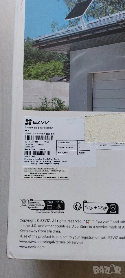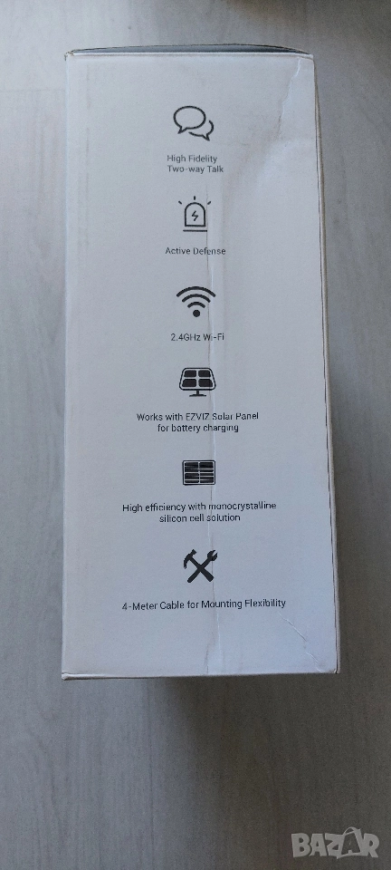 Продавам чисто нов, неразопакован комплект за видеонаблюдение от световния лидер в домашната сигурност EZVIZ. Този пакет включва напълно безжична, батерийна Wi-Fi камера и съвместим соларен панел (монокристални клетки, 6V/6.18W), което го прави 100% автономно и екологично решение за сигурност.