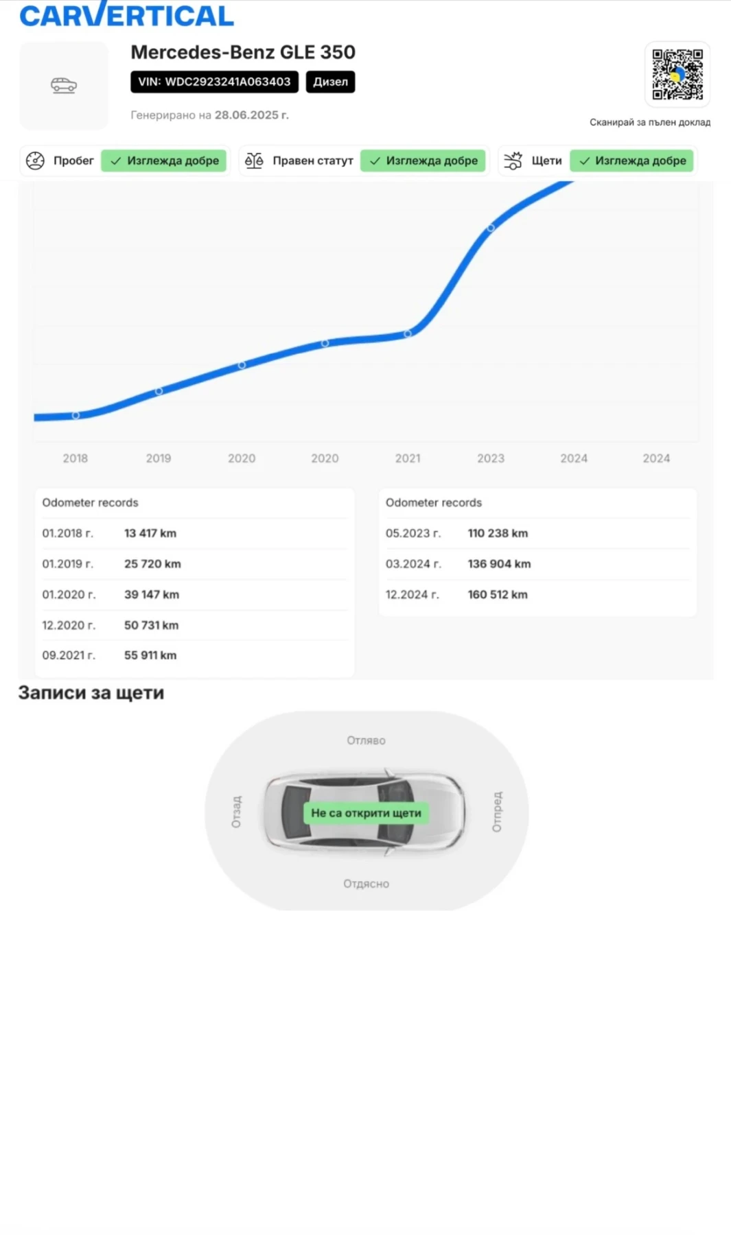 Mercedes-Benz GLE 350 d 4MATIC Coupe AMG - Представяме Ви проверен, употребяван автомобил с доказан произход, наличен в гр. Русе. - Закупен от официално представителство на Mercedes в Германия. - Пълна сервизна история, документирана със снимки и оригинални фактури. - Последно обслужване извършено на 180000 km . - Приложен CarVertical доклад без инциденти, без корекции по пробега, реална история и визуален отчет. - Автомобилът е преминал цялостна диагностика и тестово шофиране над 50 км всички системи функционират безупречно. - Възможност за проверка в сервиз на Mercedes или такъв по ваш избор. Технически данни - Първа регистрация: 01. 2017 г. - 3. 0 V6 дизел / 190 kW (258 к. с. ) - Автоматична скоростна кутия 9G-Tronic - Постоянно задвижване на всички колела (4MATIC) - Евро 6 / Обсидианчерен металик с фолио Arlon Satin Metallic Gold (хамелеон ефект) - Пробег: 187 000 км - VIN: WDC2923241A063403 - Следващ технически преглед: 08. 2026 г . Основни предимства и оборудване - Пълен AMG пакет екстериор и интериор - 360 камери + преден и заден парктроник с визуализация - COMAND Online голям дисплей, навигация, DVD, интернет, гласово управление - Асистент за мъртва зона, асистент за лента, разпознаване на пътни знаци - Електрически седалки с памет и лумбална опора и за двете предни места - Амбиентно осветление с многоцветен режим - Фабрично затъмнени и термоизолирани задни стъкла - Професионално защитно фолио Arlon Satin Metallic Gold хамелеон - Спортен AMG волан, изработен от естествена кожа с електрическо регулиране и функция памет - 9G-Tronic автоматична скоростна кутия - Разширен кожен пакет табло, кори на вратите и подлакътници, обшити в кожа с контрастни бели шевове Комфорт и технологии - Keyless-GO безключово палене - Електрическа задна врата - Автоматичен климатроник с отделно управление за задните места - Автоматично затъмняващи се вътрешно и външни огледала - LED Intelligent Light System - Сензори за дъжд и светлина - Аларма и пакет против кражба - ECO Start/Stop система - AGILITY SELECT режими на шофиране - Йонизатор за въздуха Интериор и мултимедия - Черен кожен салон (естествена кожа/напа) с декоративен бял шев - Спортни седалки с подгряване, памет и лумбална опора - Табло и врати с декор от тополово дърво - Черен таван - COMAND APS NTG5, Apple CarPlay / Android Auto - Bluetooth, USB, AUX, SD карта, слот за SIM - Premium Sound System Harman Kardon - Гласово управление Джанти и гуми - Оригинални 21'' алуминиеви джанти AMG - Continental SportContact 6 DOT 2023 - Предни: 275/45 R21 грайфер: 5 мм - Задни: 315/40 R21 грайфер: 5 мм - Индекс на скорост: Y (до 300 км/ч) - 2 комплекта гуми . Зимните са на 3 к - км чисто нови Ariwo .