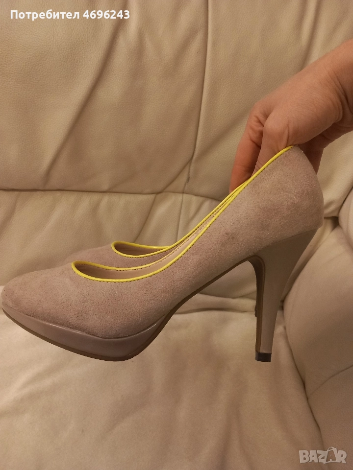 Нови кремави токчета с жълт аутлайн от марката Via Giulia. Направени от велур. Номер 40. Цената им е 15 лева.