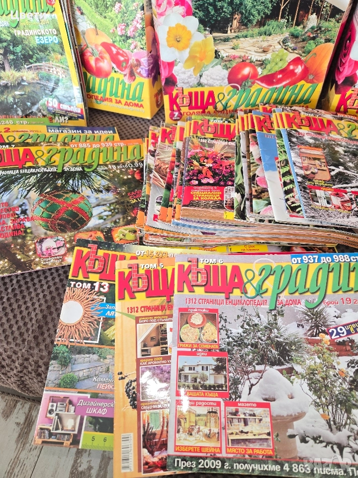 Списания колекция от 2009 2010, 2011 , 2012 , списанията са Къща и градина, Градината . Цената е за всички 150 списания .