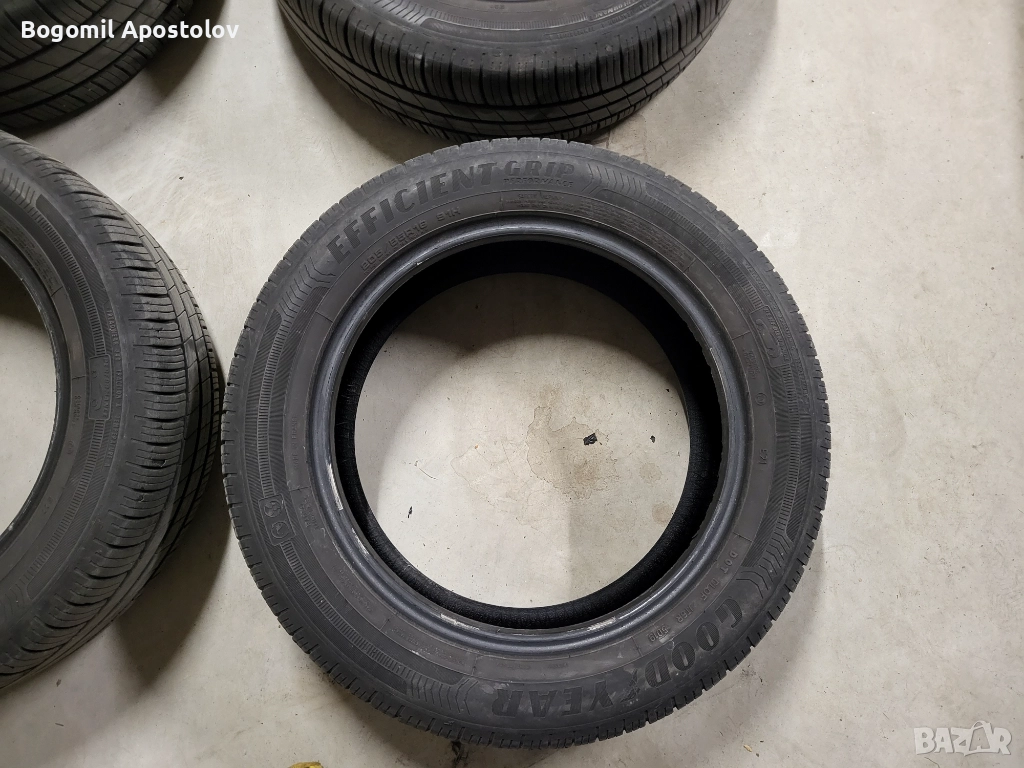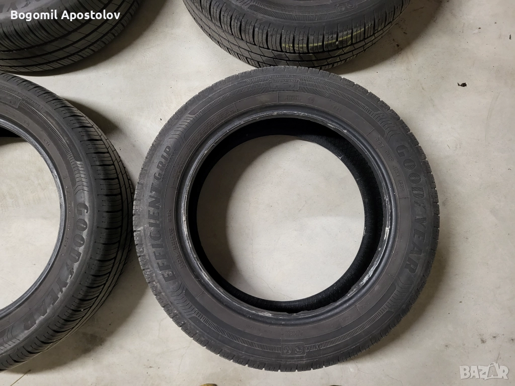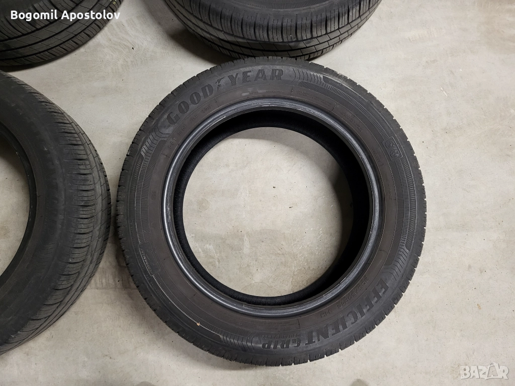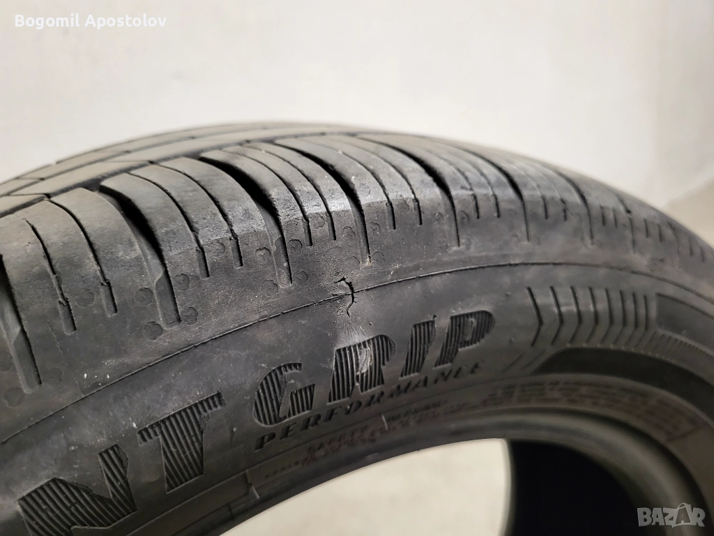 Продавам 4 бр. използвани летни гуми Goodyear EfficientGrip Performance, 16 цола, размер 205/55/16, DOT 5019. Грайферът все още има някакъв ресурс, едната от гумите е вулканизирина странично (вижда се на снимките) и има лек балон, но не изпуска, карани са до последното лято.