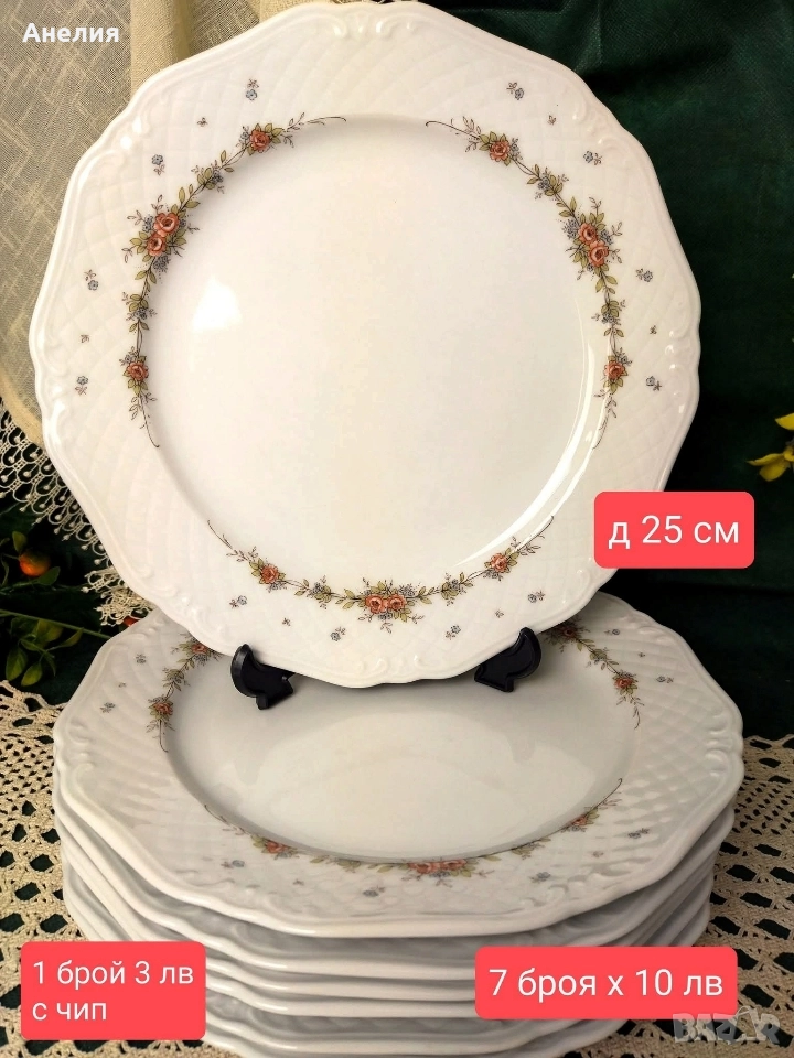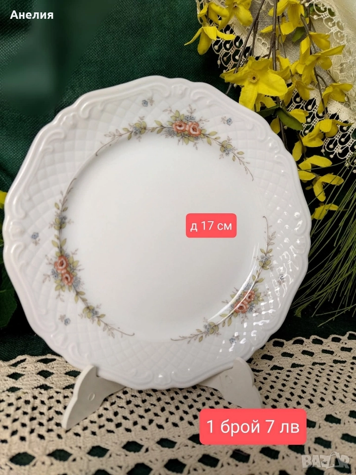 🌼1 брой чиния с диаметър 17 см и цена 7 лв/3.58€