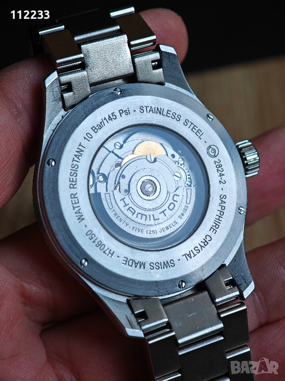 Часовникът е в добро използвано състояние . Вижте всички снимки. Те са част от описанието. Работи отлично. Има някои следи от употреба,за това и цената му е толкова ниска. С кутия и документи. Голям ,красив класически Хамилтън.