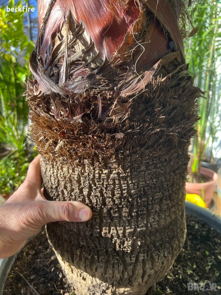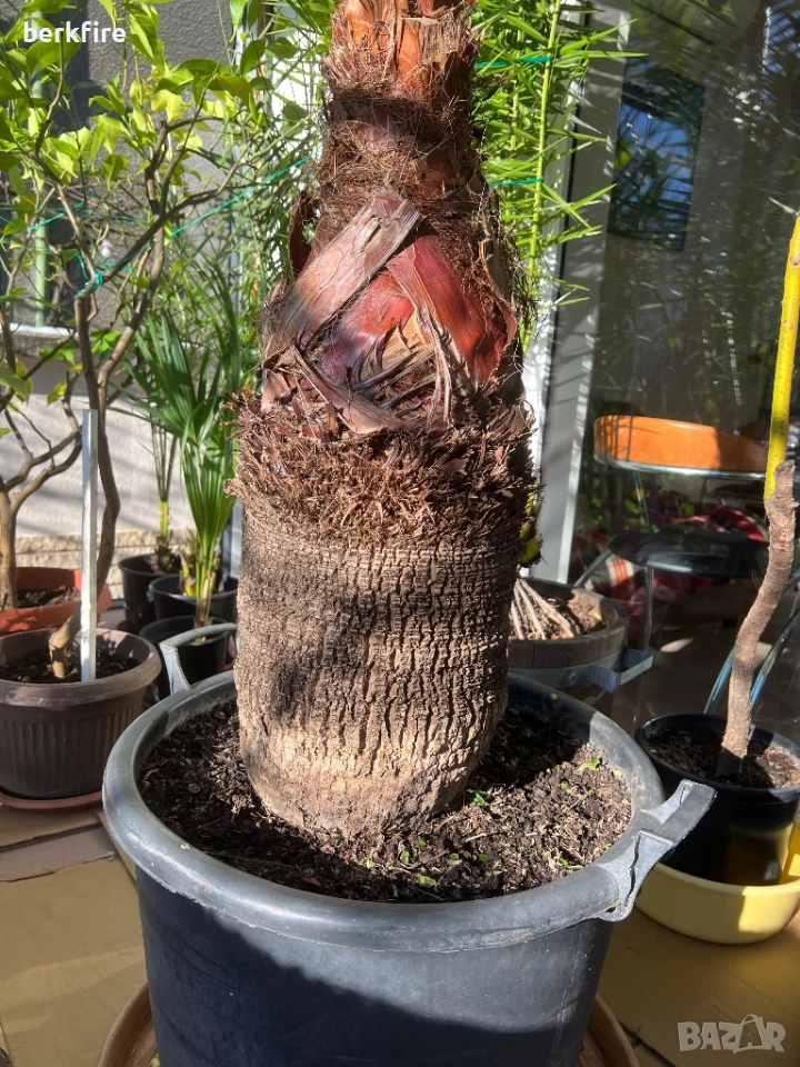 Палма Вашингтония ( Washingtonia ) от 1985г. Много голяма. Обиколка на стъблото 85 см.