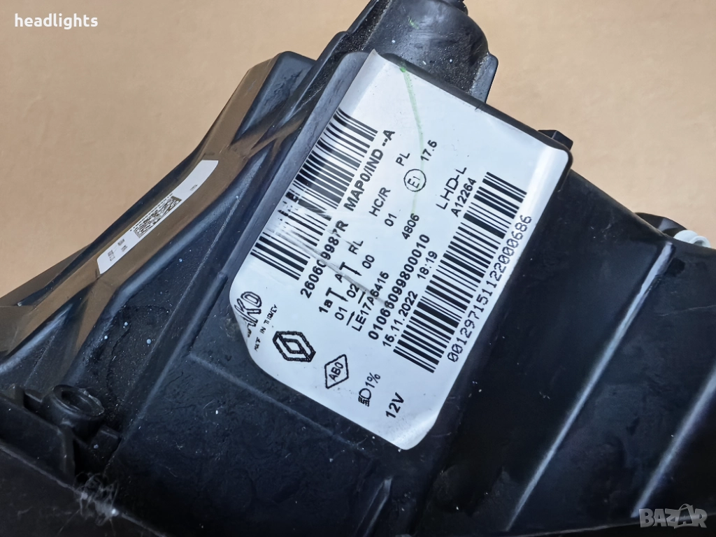 Оригинален ляв фар за Renault Clio Full LED - Технически работи без забележки, има един счупен захват на корпуса и поправена забележка (пукнатина) на стъклото. Оборудван с модул.