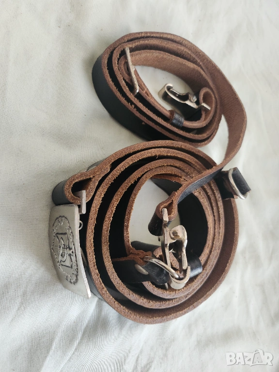 а) офицерски кожен колан с портупей нов/неползван