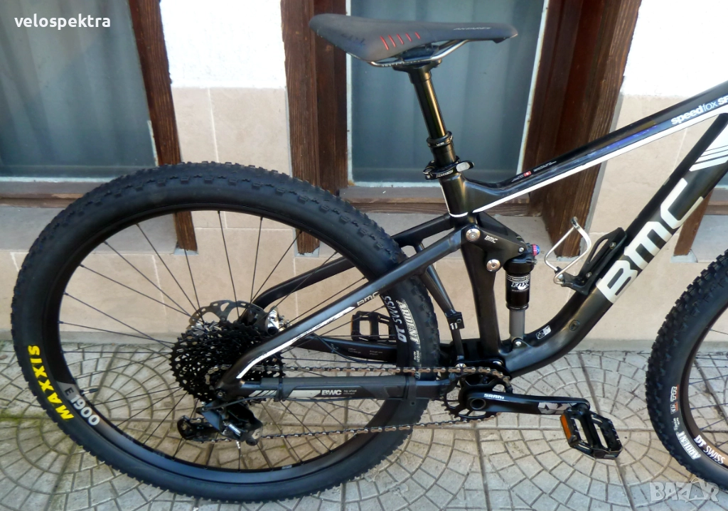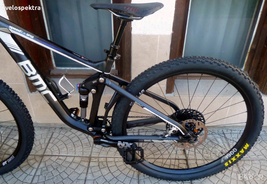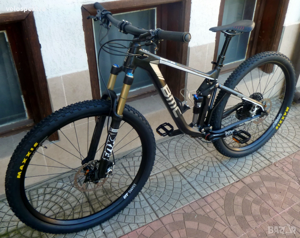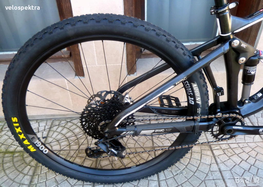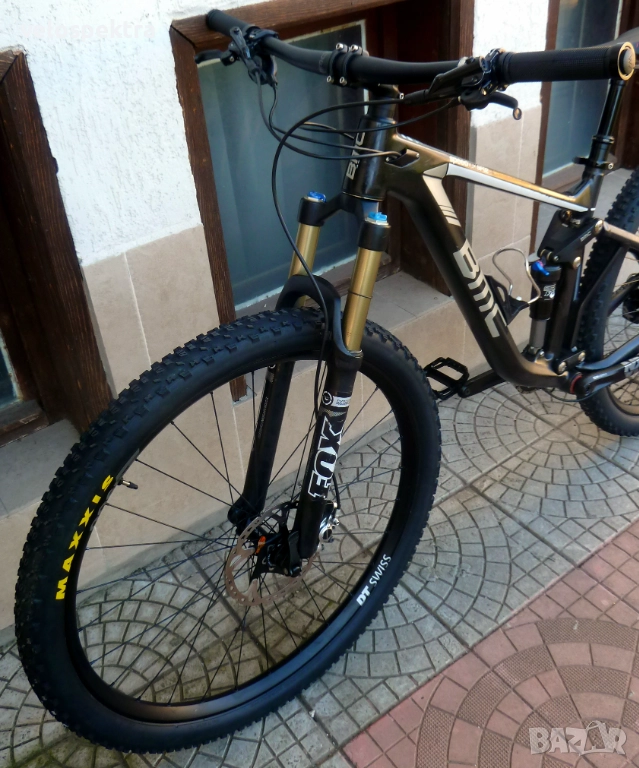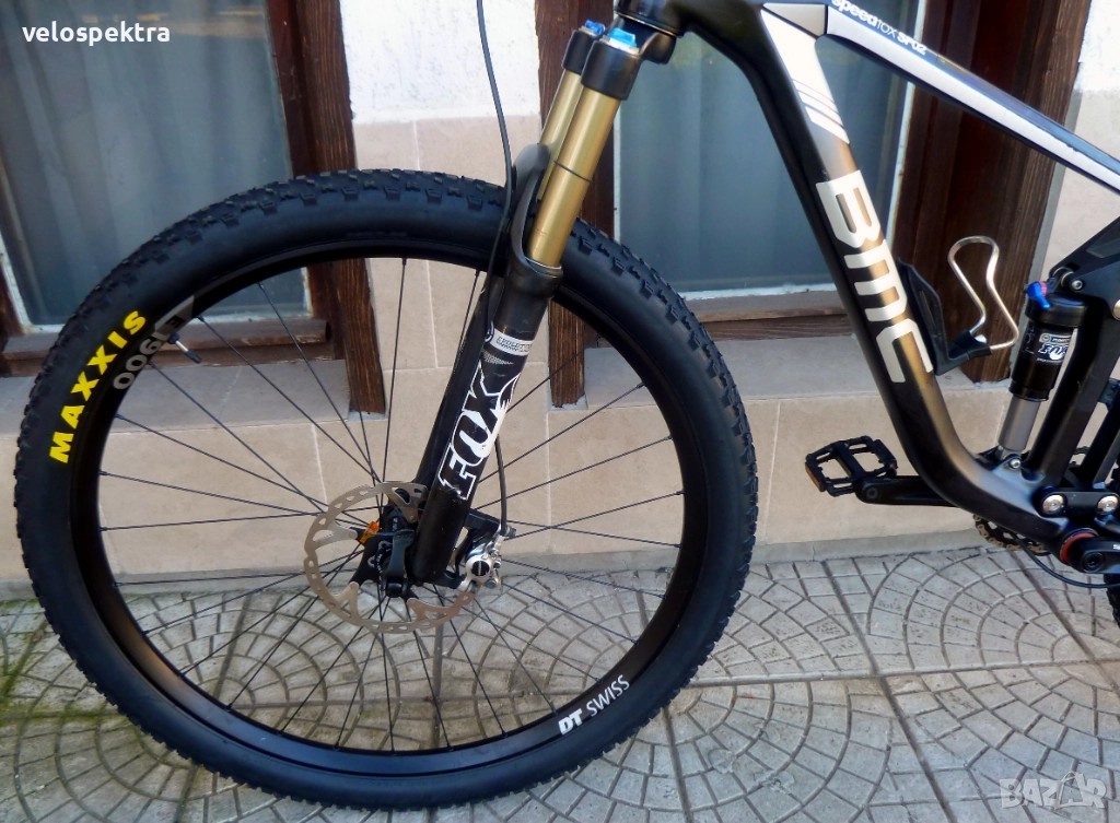 29 цола тристенни алуминиеви аеро капли ДТ СУИС шини , главини със супер лек ход ДТ СУИС , с проходни оси предна ос 15 мм. задна ос 10 мм. , кевларени гуми МТВ 29" 2.4. Максис