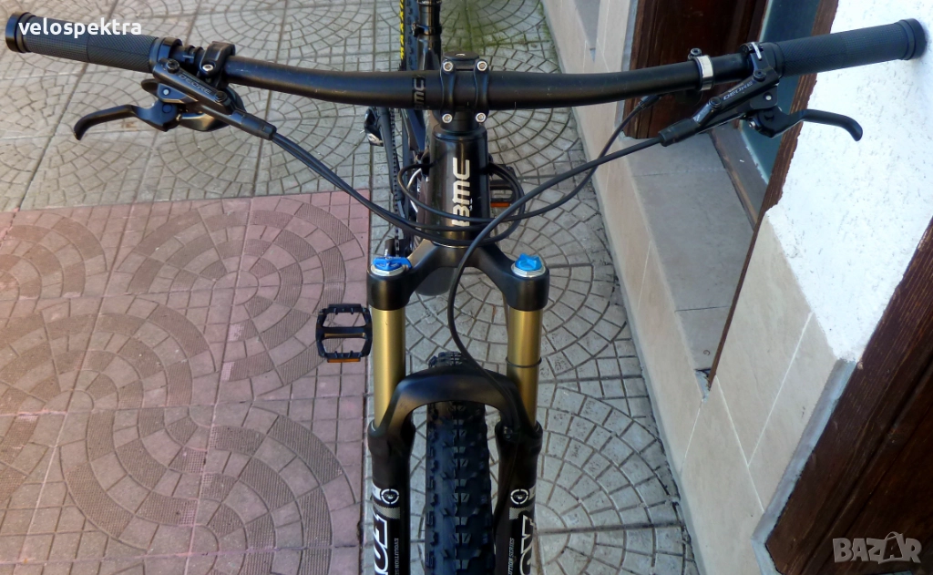 Широко кормило със силиконови грипове с ринг. Седло Физик с дропер, зкоманда от кормилото .