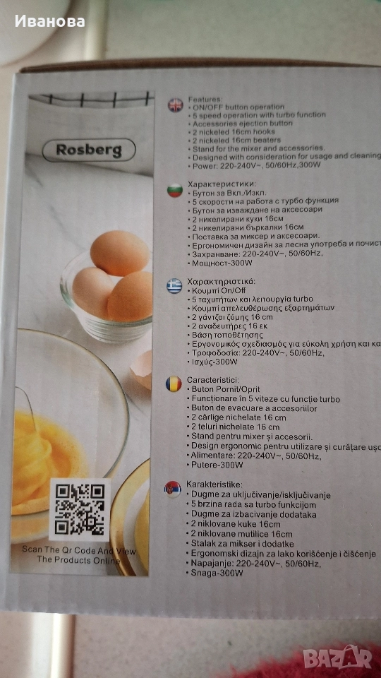 2 никелирани бъркалки 16см Поставка за миксер и аксесоари. Ергономичен дизайн за лесна употреба и почистване Захранване: 220-240V~, 50/60Hz Мощност-300W