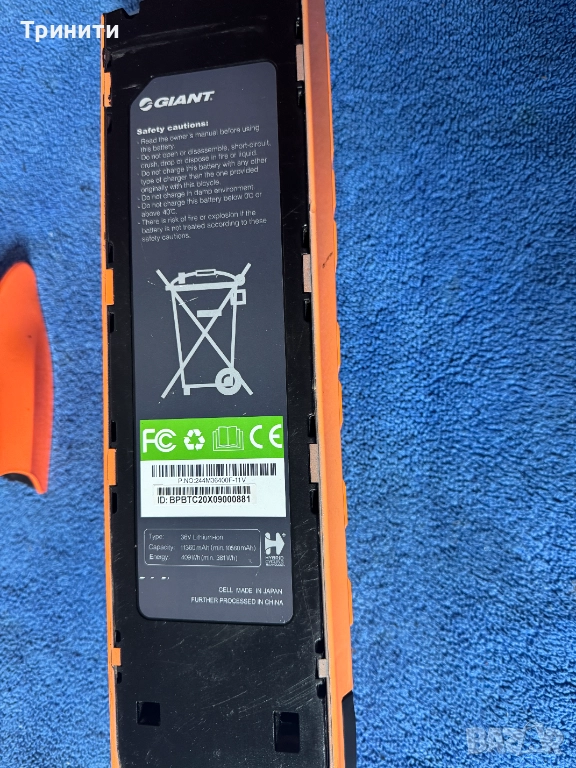 400Wh battery for Giant. батерията се за велосипед Гиант с този тип захват. Давам и подарък капака,който стои към велосипеда.