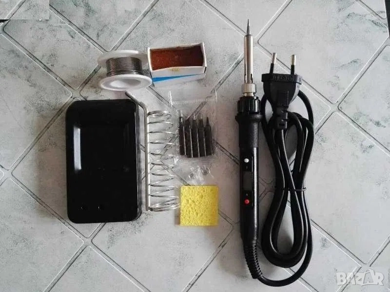 3. Продавам нов поялник с дисплей + аксесоари, с регулатор на температурата от 200⁰С до 480⁰С, 220V 80W. Има светлинен индикатор, с тънка човка, подходящ за фини спойки. Аксесоарите към него са 5 броя допълнителни човки, калай, тинол, стойка и гъба. Снимка 8.