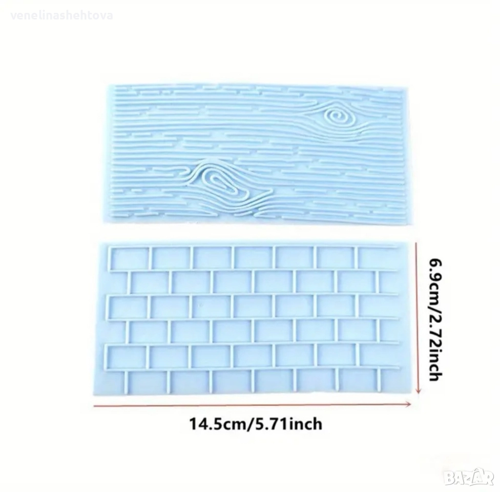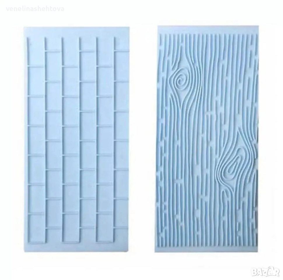 2 броя силиконова форма с релеф тухли стена кора на дърво за фондан декорация торта → Обява 52945336