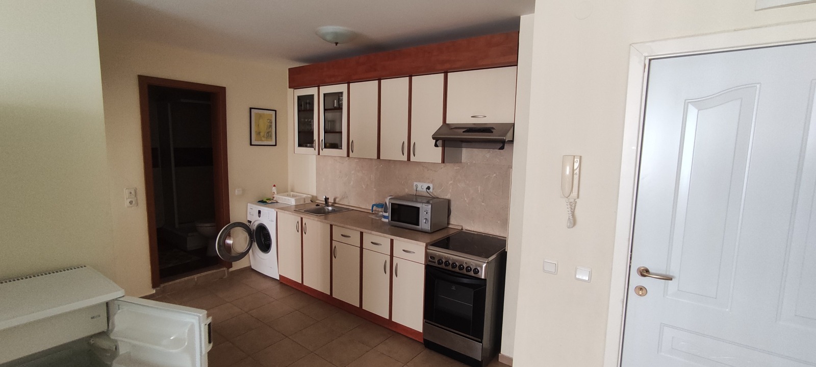 Жилището е много светло и просторно. Климатици във всяка стая, налична битова техника, хладилник, пералня, телевизор, микровълнова, кана и друго.