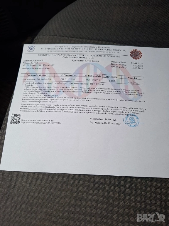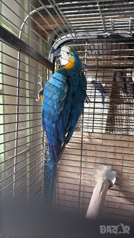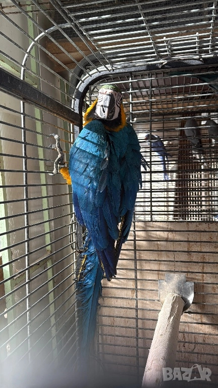 Продавам синьо жълта женска ара, ръчно хранена излюпена на 11 август 2025 година. Има ДНК тест за пол и тест за вирус PBFD .Птицата е отрицателна. Цена по договаряне. Обаждайте се на посочения номер.
