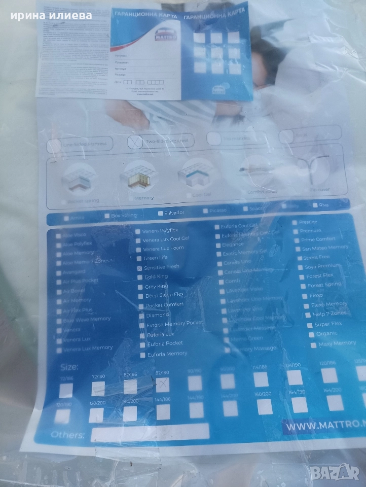 нов двулицев матрак 190/82 Мемори пяна → Обява 52946343