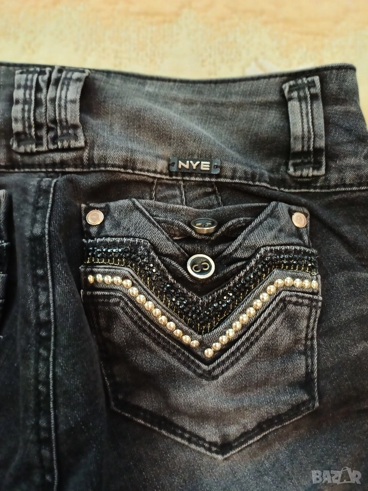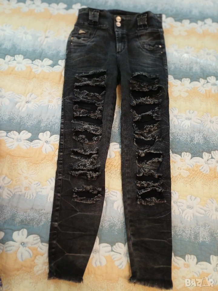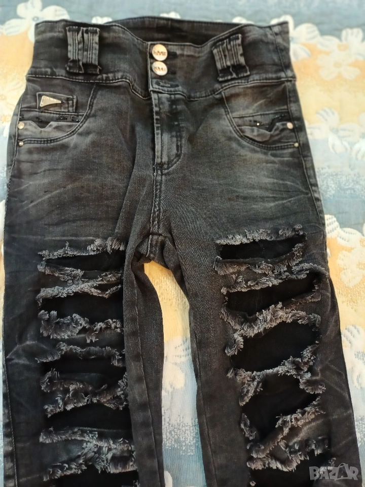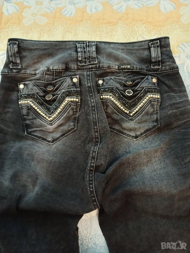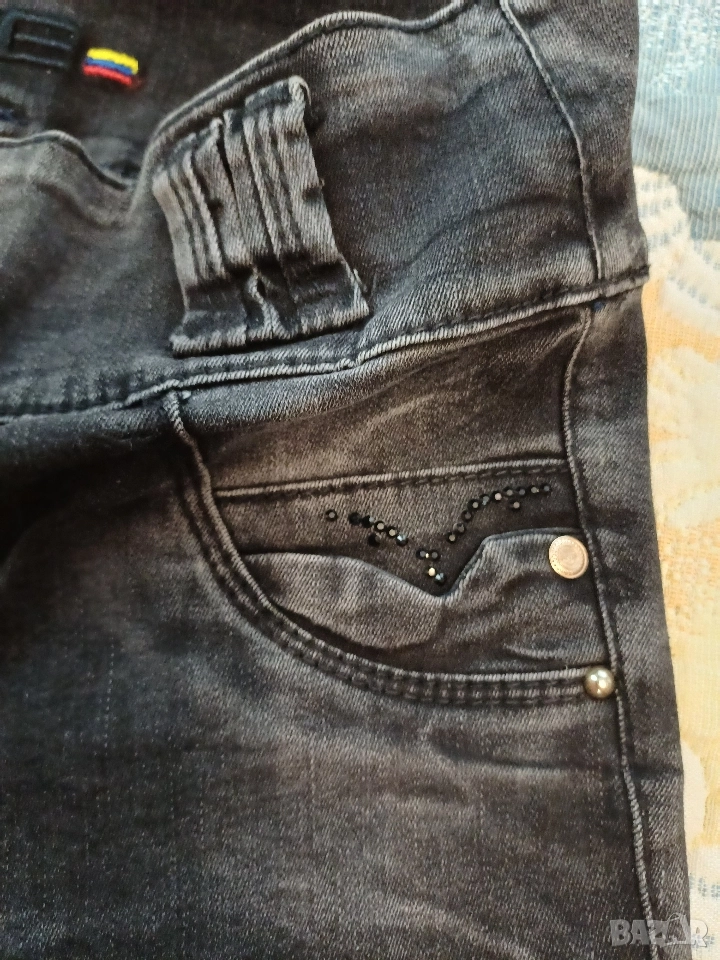 Впечатляващ модел, качествени материя, камъни и шев, марково дънки. С прозрочен щих под цепнатините, изключително класен модел и изпълнение, за спортни мадами , силно еластична материя по крака.
