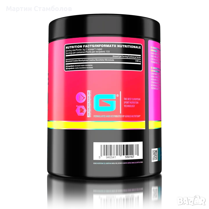 Genius Nutrition® Creatine е безопасна добавка, създадена да ти даде сила, решителност и издръжливост. Благодарение на директния си ефект върху увеличаването на силата, можеш да постигнеш максимума си. Основната съставка – креатин – повишава физическата производителност при кратки, повтарящи се и високоинтензивни натоварвания.