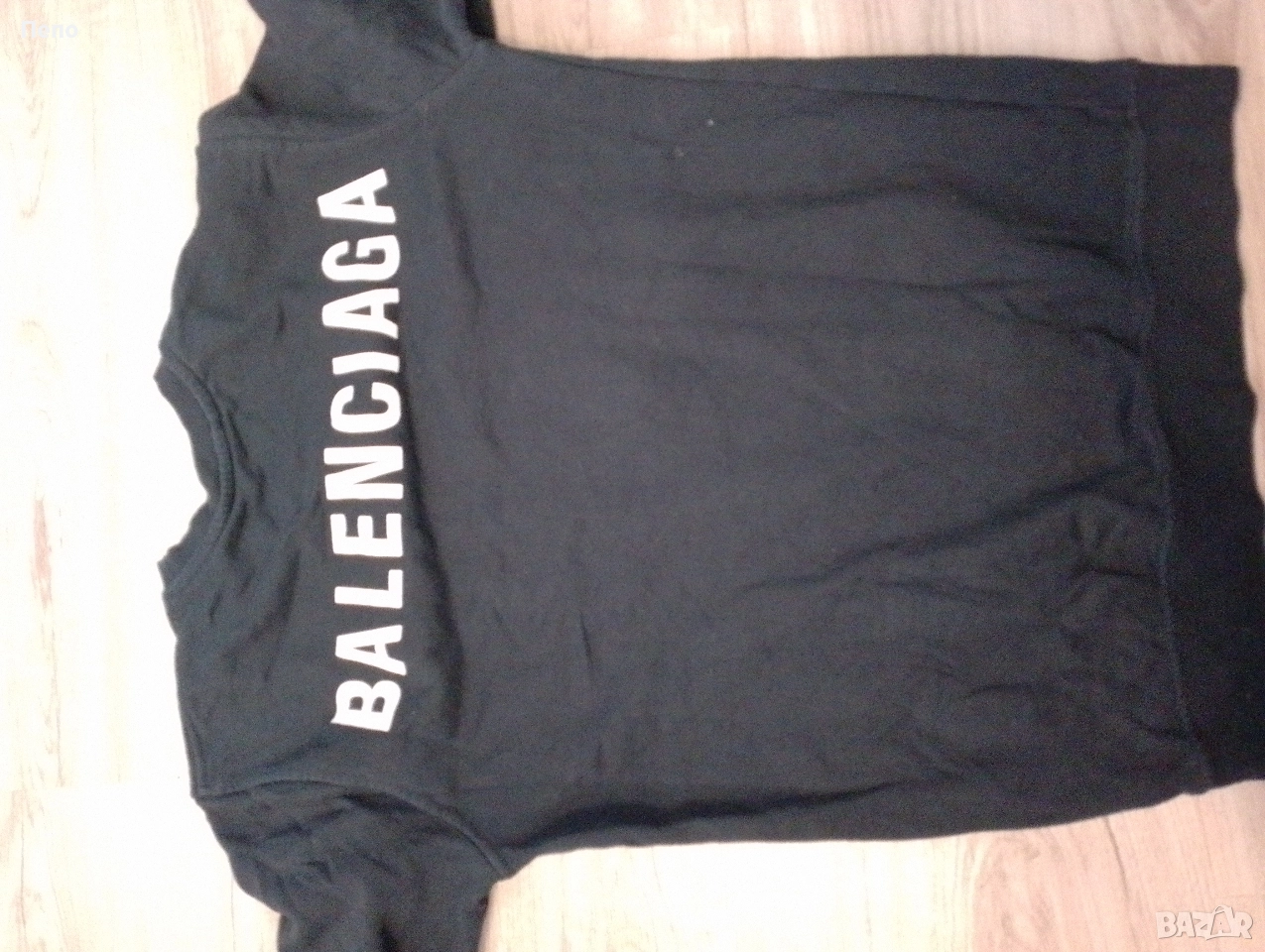 Нормални следи от употреба от мишница до друга 45см дължина 65см памучна материя е не е наситено черен цвят.
