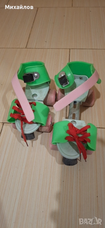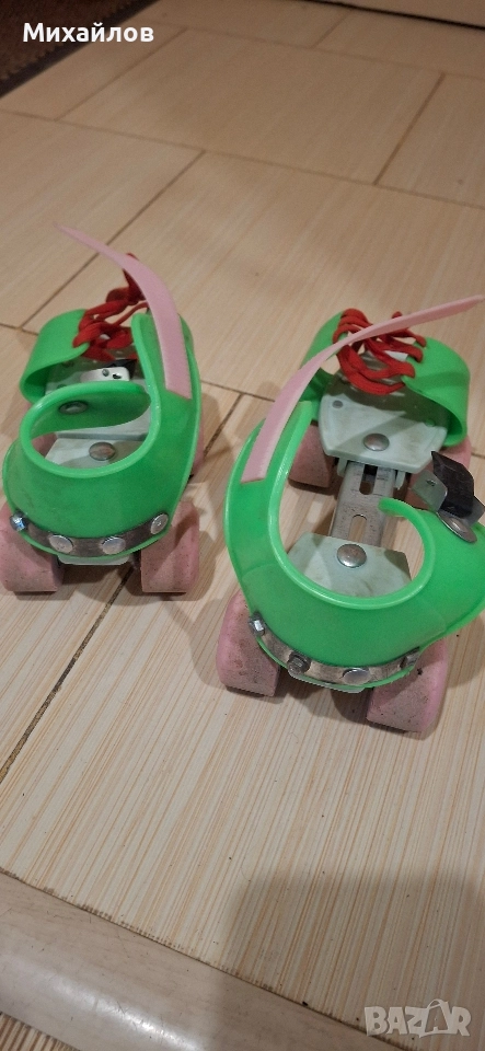 Ползвани ролкови кънки. Размера може да се разтегне до обувка 34 номер. Правен и лек ремонт за здравина.