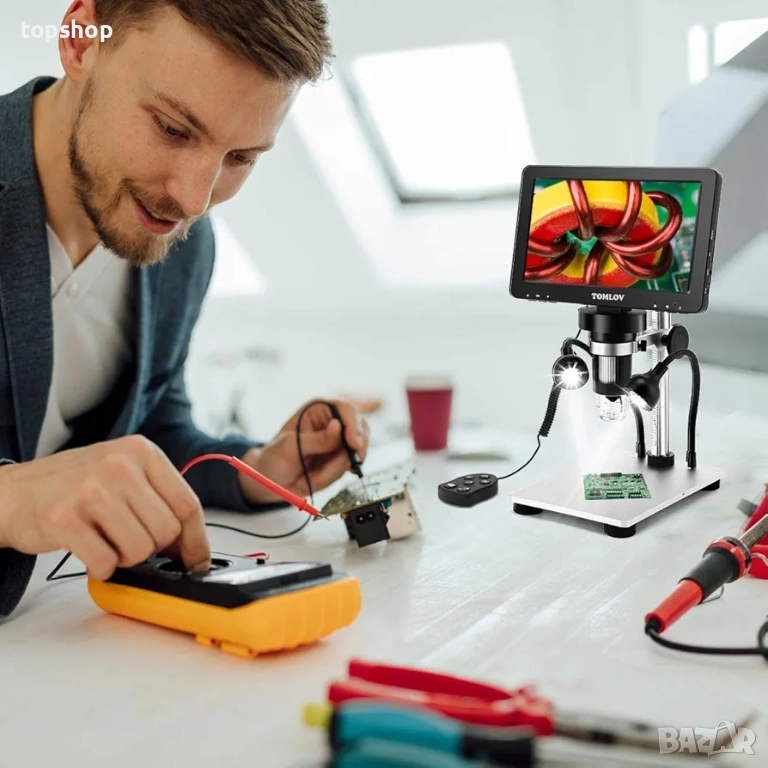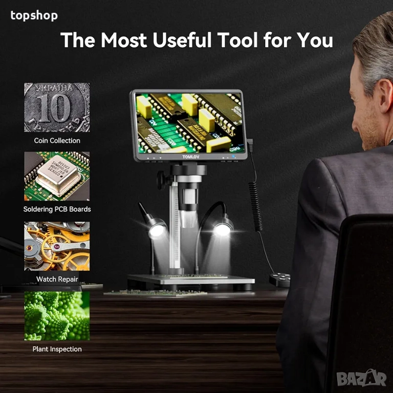 TOMLOV DM9 7" цифров микроскоп: 1080P 1200X увеличител за монетен микроскоп, 12MP ултрапрецизен ...