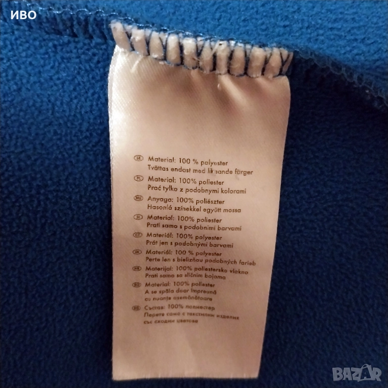 Цвят: син, с черни кантове от раменете към ръкавите.