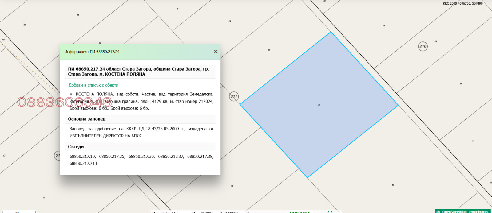 Продаваме поземлен имот в местност Кимикли Алан, южно от квартал Железник в град Стара Загора. м. КОСТЕНА ПОЛЯНА, вид собств. Частна, площ 4129 кв. м.