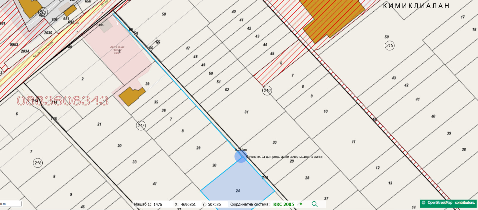 Имота граничи с черен път и също така се намира на 250 метра от главния път - зад автокъща Оникс карс. Има правилни форми на правоъгълник, което позволява да бъде разделен на по-малки парцени с еднаква форма. В момента парцела е даден на рендатор и се обработва. Няма дървета в територията си! Ток и вода има в близост до главния път, където има други обекти.