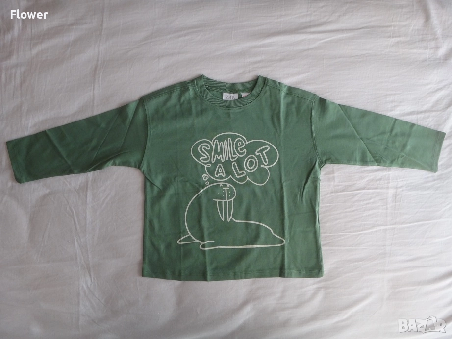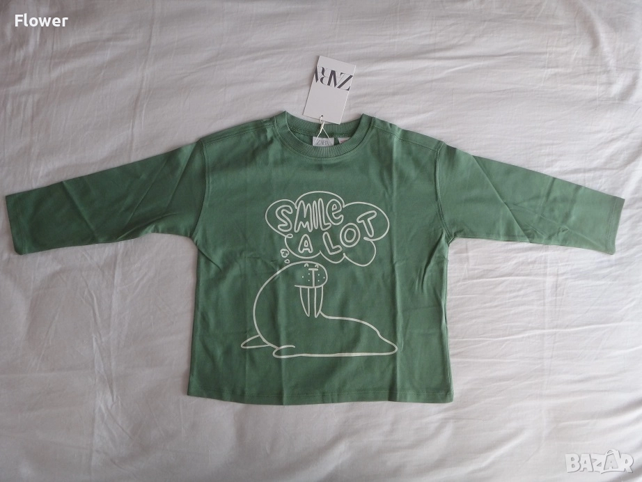 Нова Детска зелена блуза ZARA с дълъг ръкав размер 98 → Обява 52947556
