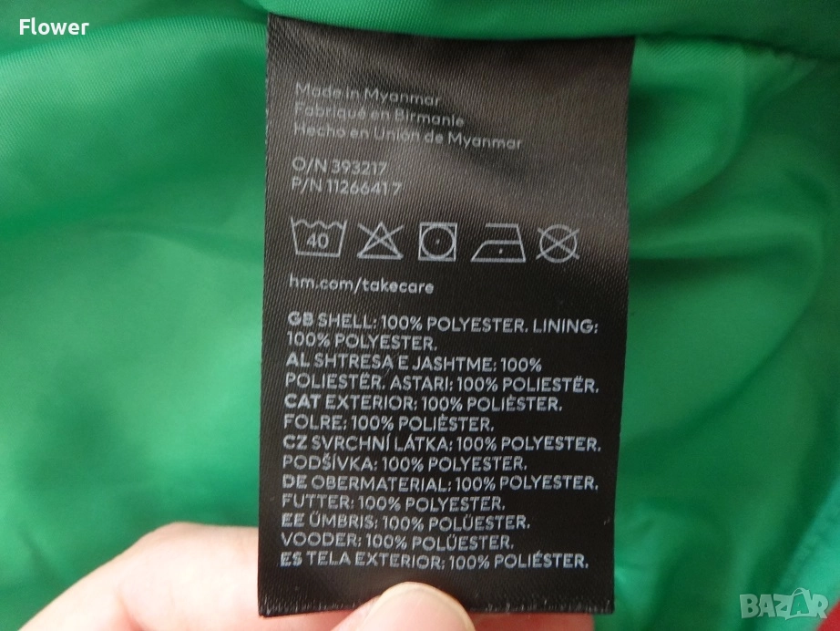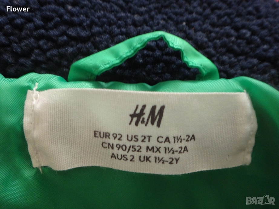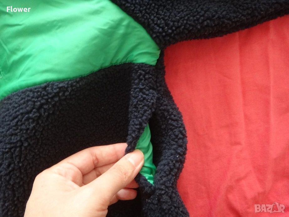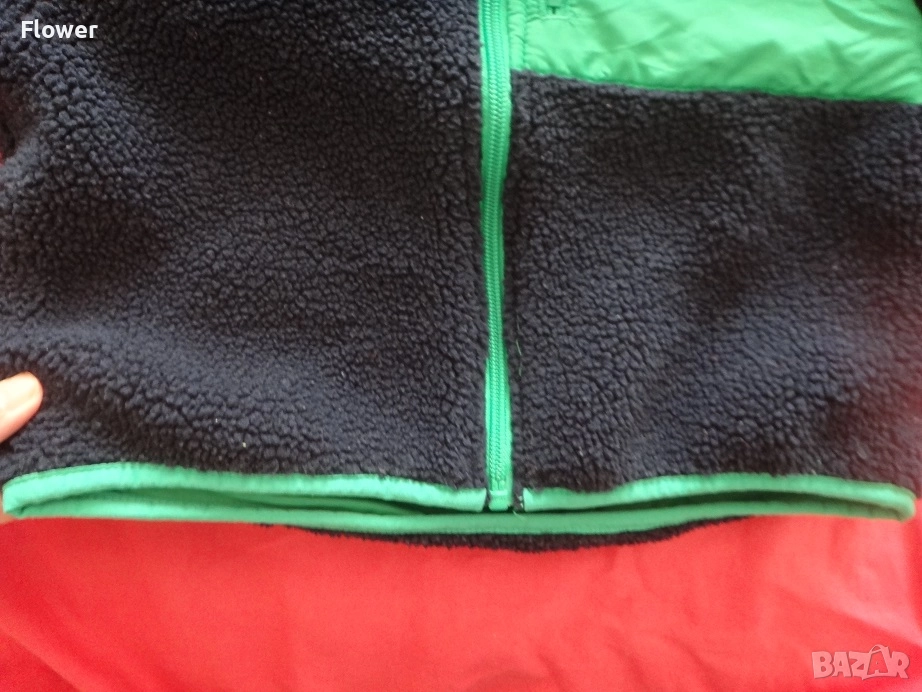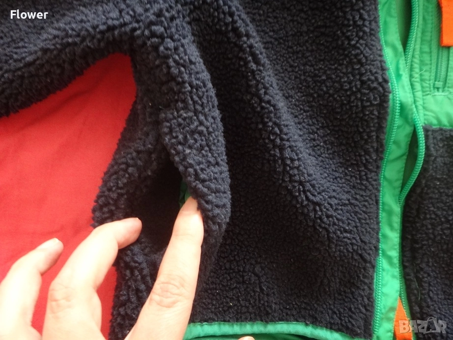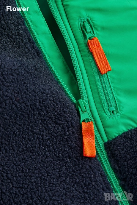 Яке от мека мъхеста материя със столче яка и цип отпред с предпазител за брадичката. Със свободна кройка, дълги реглан ръкави и джобове в страничните шевове. С кръпки на лактите и преден джоб от тъкана материя с цип. С подплата.
