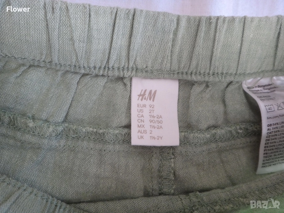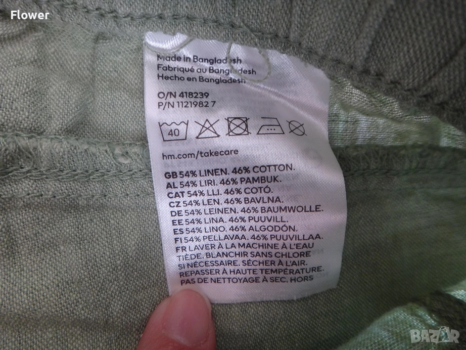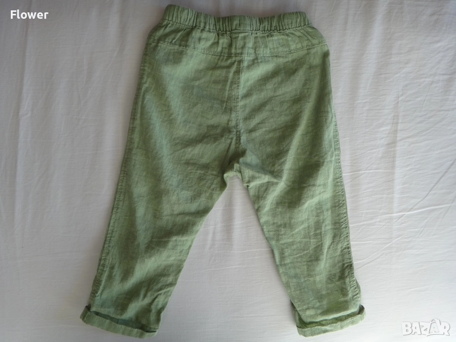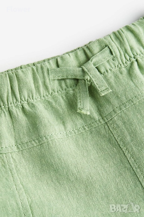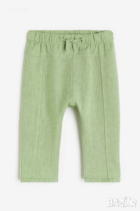 Панталон от ефирна тъкана смес от лен и памук с покрит ластик и връзка на талията.