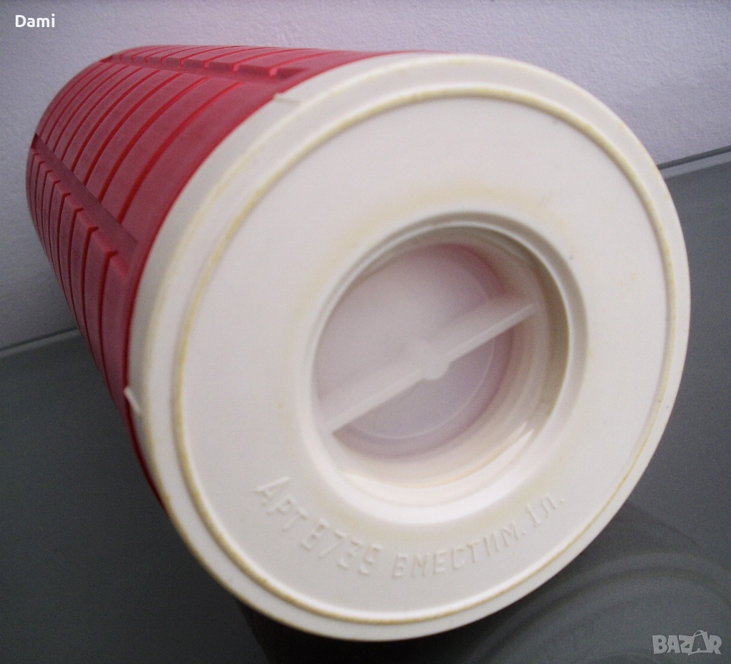 1. Термосът е съветско производство. Корпусът е от релефна пластмаса,