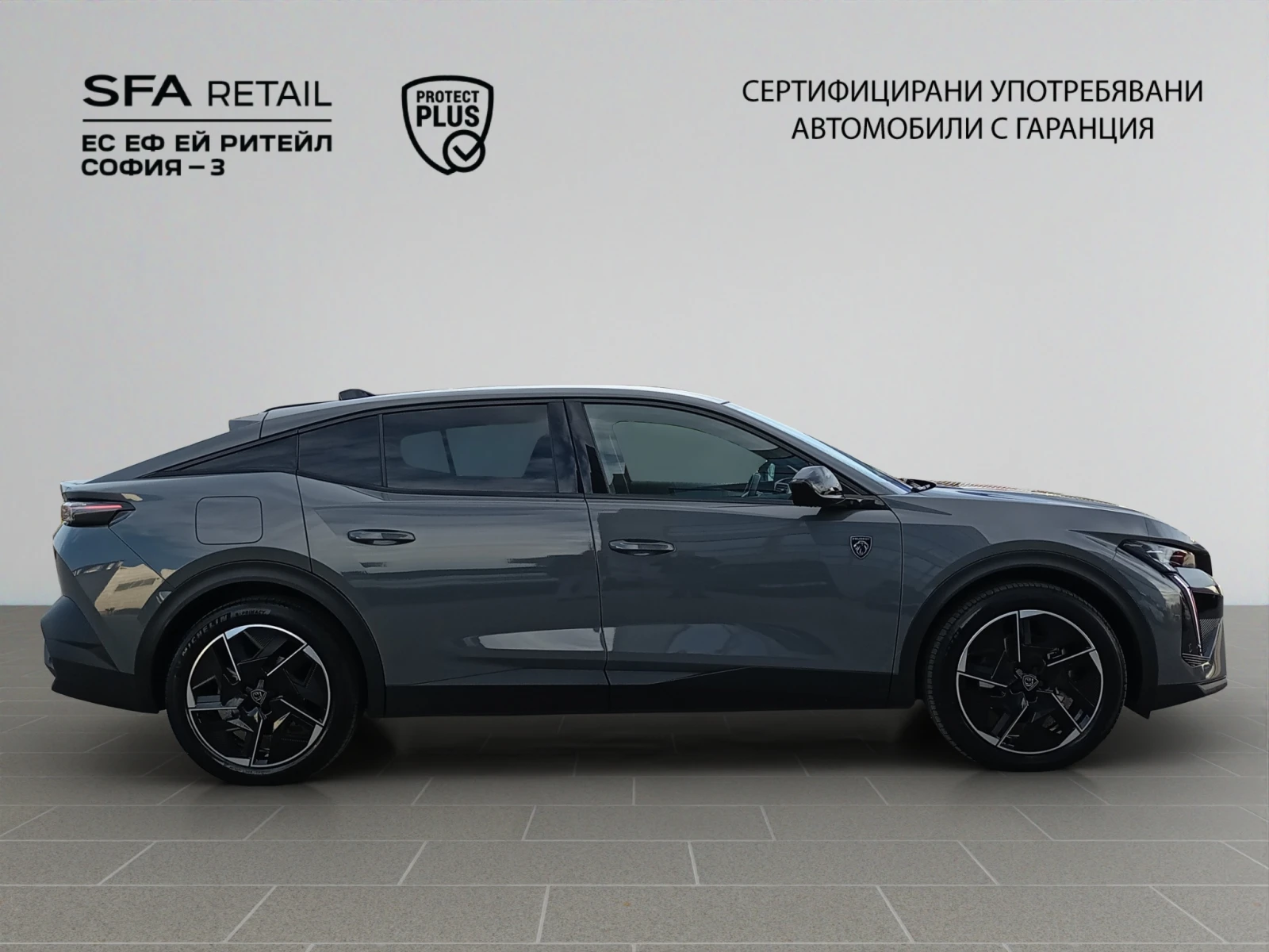 ★ ОБРАТНО ИЗКУПЕН АВТОМОБИЛ★ РЕФЕРЕНТЕН НОМЕР: 2312188 ➝ Възможност за финансов лизинг до 60 месеца. ➝ В заводска гаранция до 04. 04. 2030г. или 150 000 км. СИГУРНОСТ * 6 въздушни възглавници (предни / странични / тип завеса ) * ESP + ASR + ABS + EBD + EBA + Следене на налягането на гумите * Isofix фиксатори за детски столчета (x2) на втори ред седалки * Фарове с Peugeot Full LED Technology Matrix Beam с LED дневни светлини, задни LED прогресивни светлини с подпис с 3 следи от нокти на Лъва * Автоматично регулиране на фаровете * Фарове за мъгла * Електрическа ръчна спирачка * SAFETY E-call * Бордно зарядно устройство 3, 7 kW * Кабел за зареждане тип 2 СИСТЕМИ В ПОМОЩ НА ШОФИРАНЕТО И МАНЕВРИРАНЕТО * Разпознаване на пътните знаци * Регулатор и ограничител на скоростта * Предложение за препоръчителна скорост * Асистент за следене на пътната маркировка * Активно предупреждение за неволно пресичане на осевата линия * Предупреждение за бдителността на водача * Адаптивен автопилот * Активна спирачка за безопасност * Датчици за паркиране на преден и заден ход * Камера за заден ход * Автоматично превключване между дълги и къси светлини ДЖАНТИ, ВЪНШЕН И ВЪТРЕШЕН ДИЗАЙН * 19" алуминиеви джанти GRAPHITE с гуми 205/55/R19 * Комплект за ремонт на спукана гума * Странични огледала за обратно виждане с основа в цвят черен мат * Радиаторна решетка с фасети в цвета на купето * Дръжки на вратите в цвета на купето * Свръхонирани задни стъкла с хромирана лайстна * Лого Peugeot на предни калници * PEUGEOT i-Cockpit с 10'' цифров 3D инструментален панел на нивото на очите * Отопляем компактен многофункционален волан, облицован с пълнозърнеста кожа * Електрохромно огледало за обратно виждане без рамка * Преден централен подлакътник с поставка за чаши * Тапицерия текстил / кожа с шев в цвят Adamite Green * Стелки * Механично регулируеми по височина седалки на водача и на пътника до водача * Централен подлакътник на задната седалка с поставка за чаши и отвор за ски * Функция Smart Multidrive за персонализация на цветната тема на амбиентното осветление в купето (табло и врати) КОМФОРТ * Автоматичен двузонов климатроник с високоефективен филтър * Система за следене на качеството на въздуха в купето + Clean Cabin * Електроуправляеми предни и задни стъкла с хромирана лайсна в основата * Акустично ламинирано предно стъкло * Електрически сгъваеми, управляеми и отопляеми огледала за обратно виждане с вградени LED мигачи * Автоматични фарове и чистачки * Автоматично регулиране на светлините * Безключов достъп до автомобила и стартиране на двигателя * Електрическо отваряне на багажника със сензор за крака и детектор за пешеходци МУЛТИМЕДИЯ & НАВИГАЦИЯ * 10'' HD капацитивен екран и програмируеми тъч-бутони i-Toggle Switches , радио, 4 предни високоговорителя и 2 в задната част на купето, MP3, Bluetooth, 4 USB вход тип C и свързана навигация с гласово разпознаване TomTom + SAFETY (B-call / E-call) * Функция Mirror Screen за дублиране на приложенията за смартфон върху сензорния екран на автомобила, съвместим с Apple Car Play и Android Auto * Пакет Driver Sport: персонализиране на таблото с разширени спортни настройки, по-директен педал на газта, по-спортен сервоусилвател, спортна смяна на предавките, усилен и по-спортен звук на двигателя (може да бъде деактивиран) *Пакет Vision 360 (Visiopark 3 + аларма + Асистент за смяна на ленатата + Система за следене на напречния трафик зад автомобила) *пакет Седалки: предни отопляеми и масажиращи седалки (седалка водач AGR) с електри
