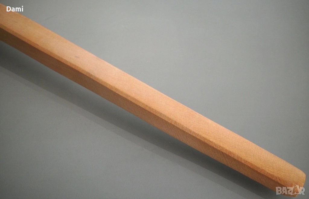 Голяма решетеста лъжица, издялана от парен бук. Атрактивна за декорация и удобна за ползване по предназначение. Много здрава. Размери: дължина 45 см, диаметър 14 см, тегло 250 гр.