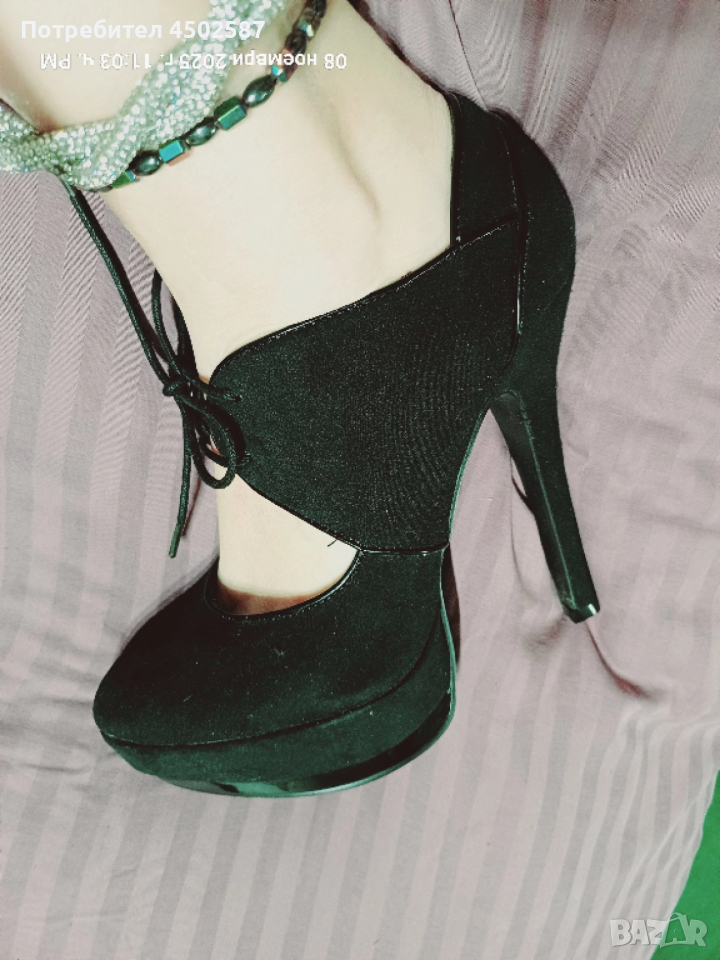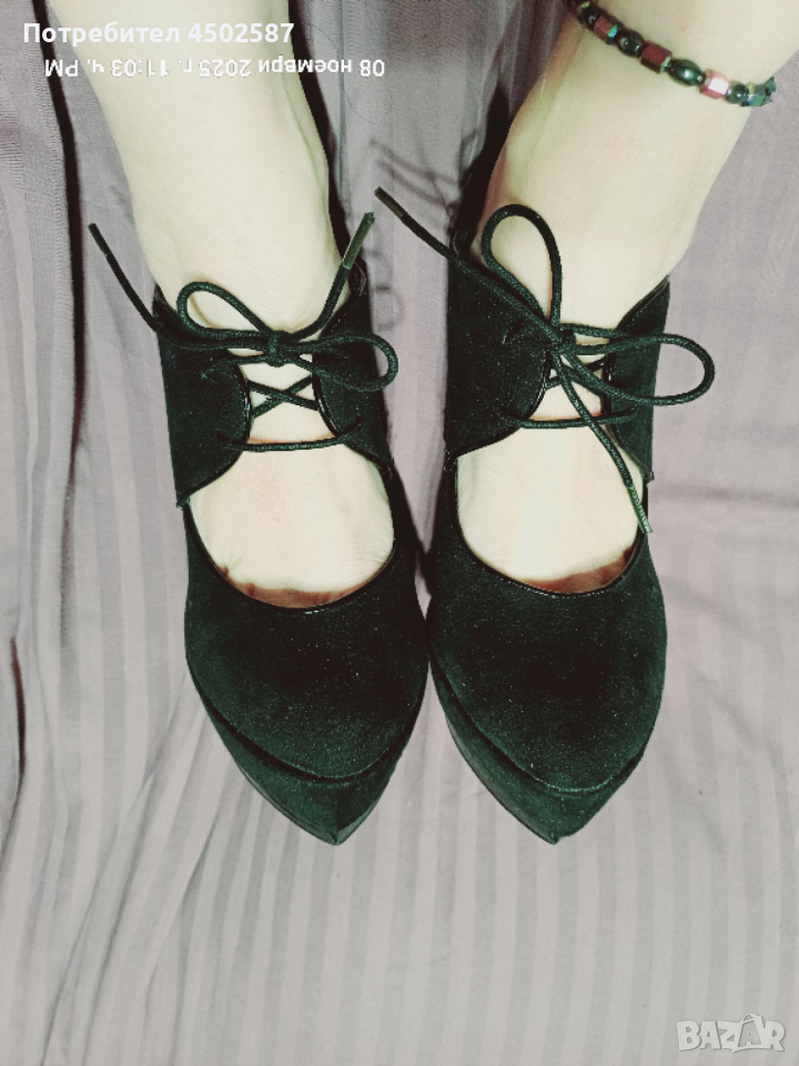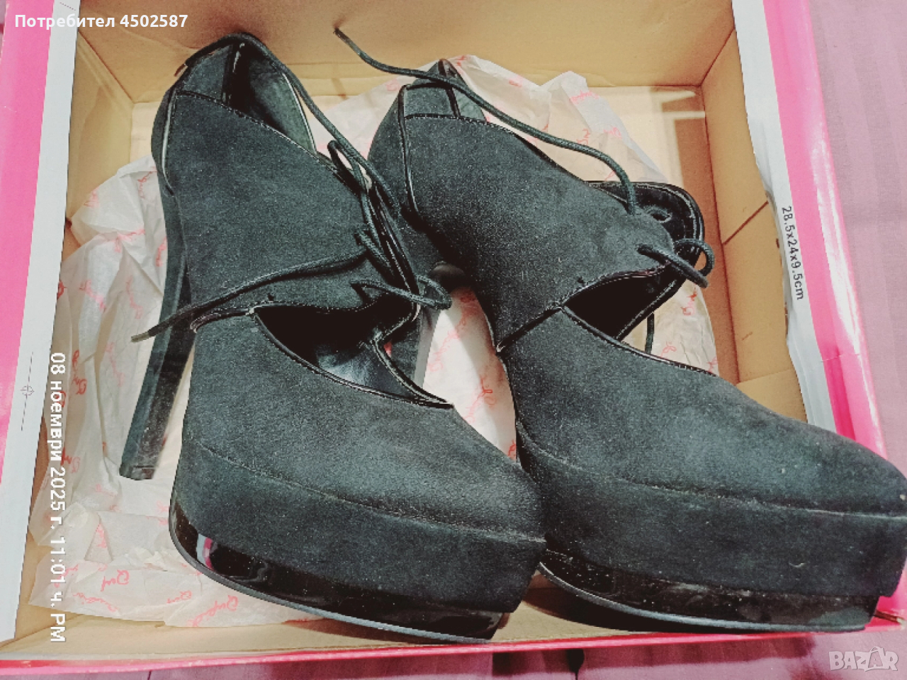 Черни обувки в връзки и 15 см ток → Обява 52949134