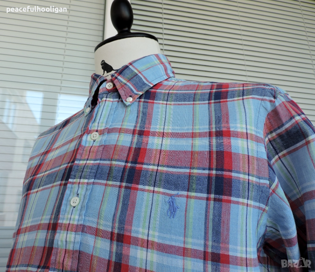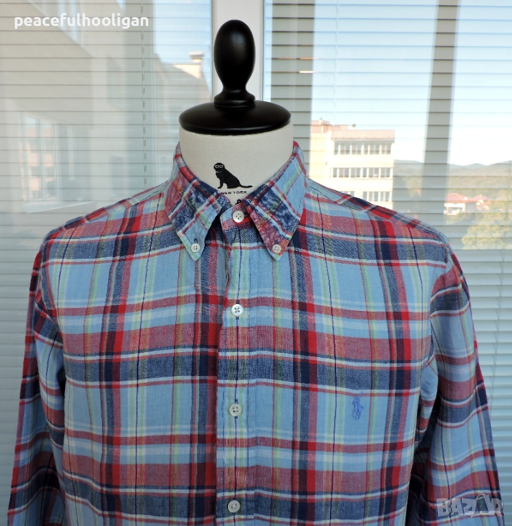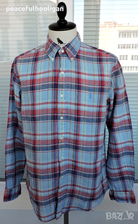 POLO RALPH LAUREN -мъжка карирана риза от лен размер L → Обява 52949409