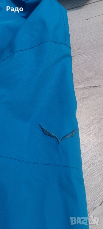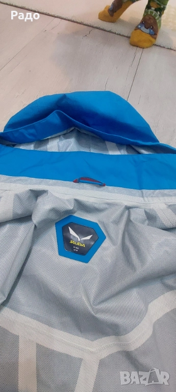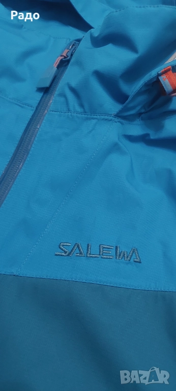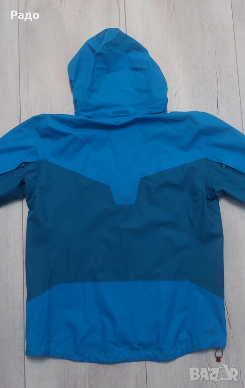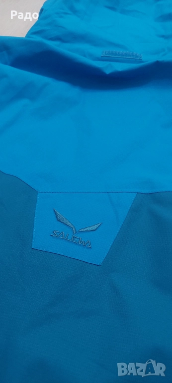Водоустойчиво яке Salewa. Размер Л. Якето е с мембрана Power Tex, с подлепени шевове, устойчиво на дъжд и вятър. Много функционално, качулка с козирка, която се сгъва в яката, ципове за проветряване, възможност за пристягане на талия и качулка.
