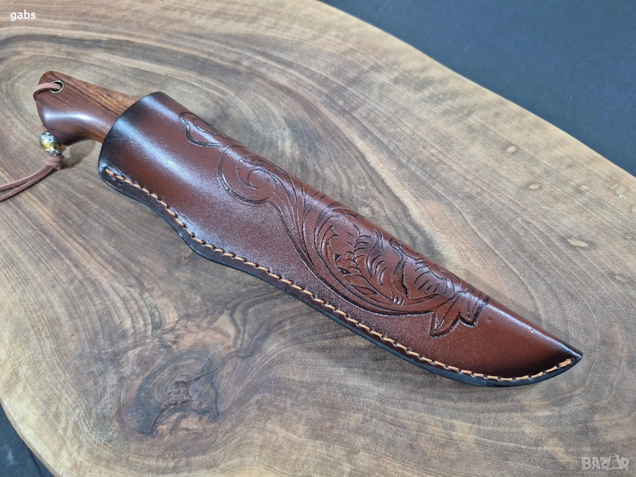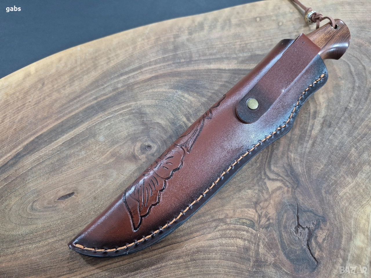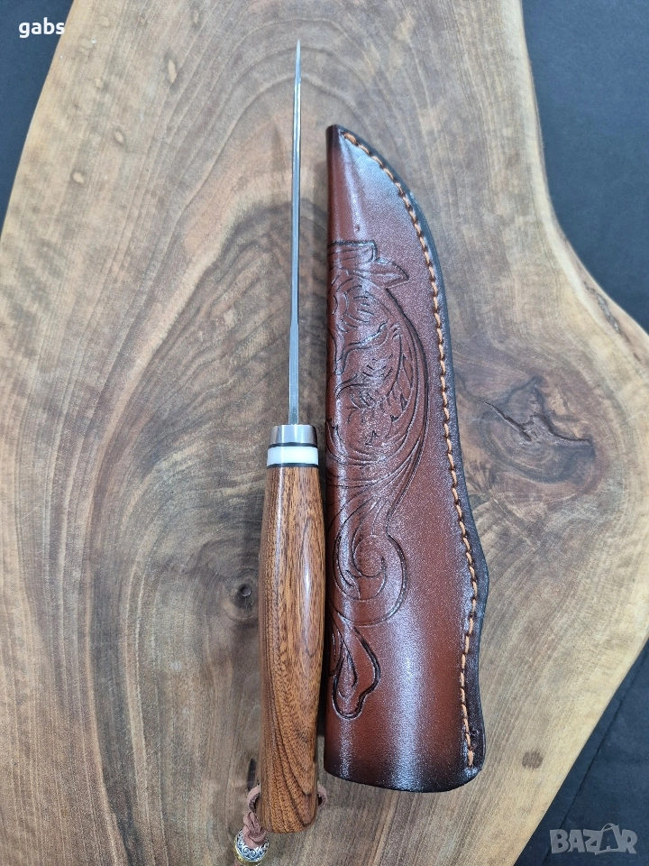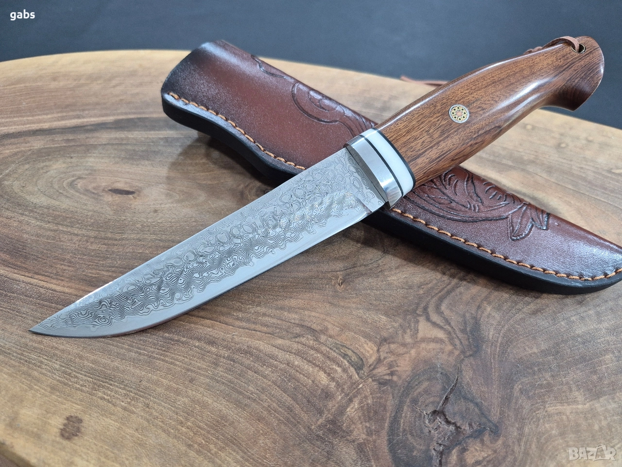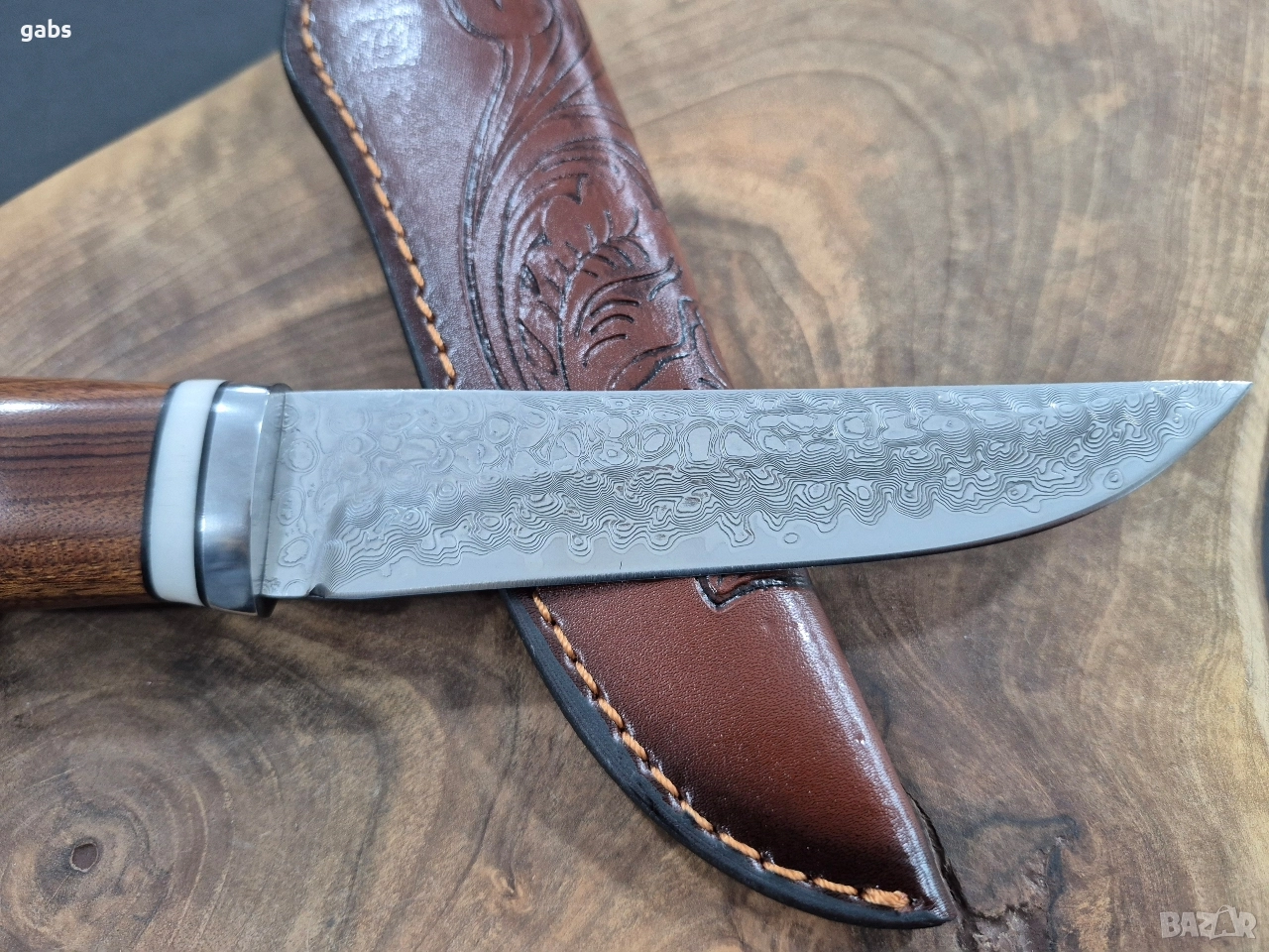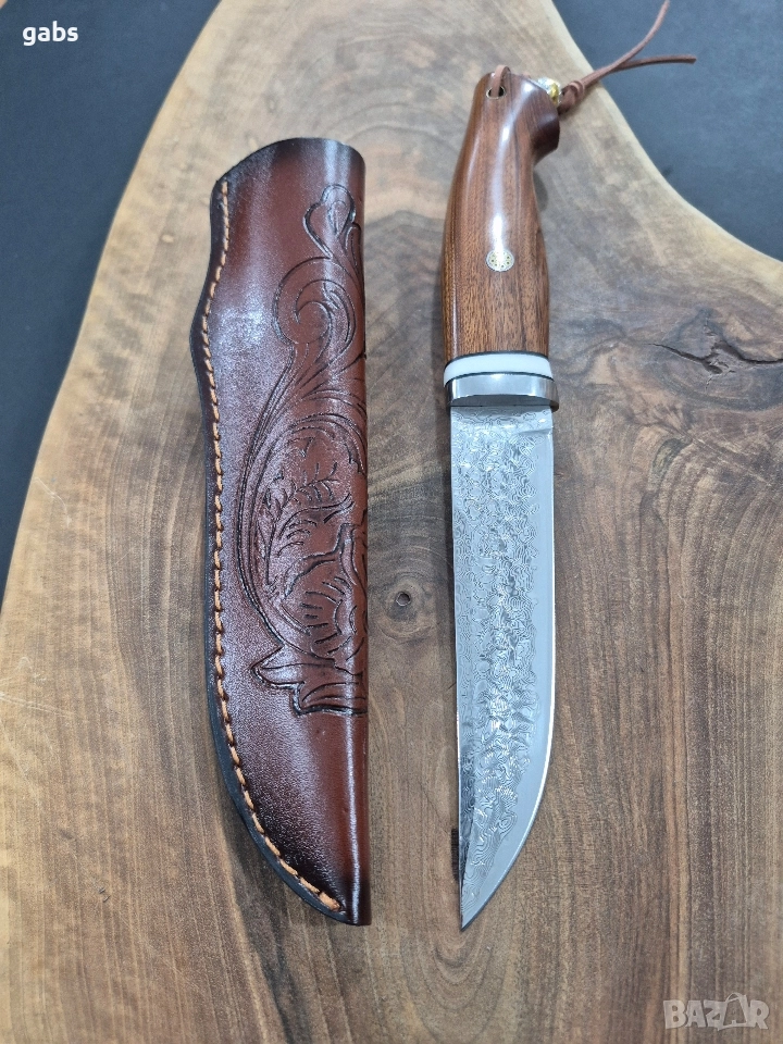 Ловен нож дамаска стомана с кожена кания.