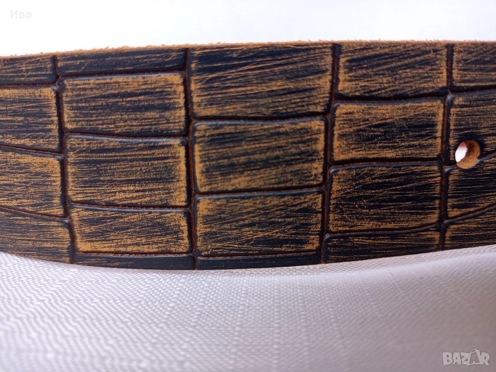 широчина - 3,9 см, размер 95. Дебелина на кожата 4 мм. Цена 35 EUR.