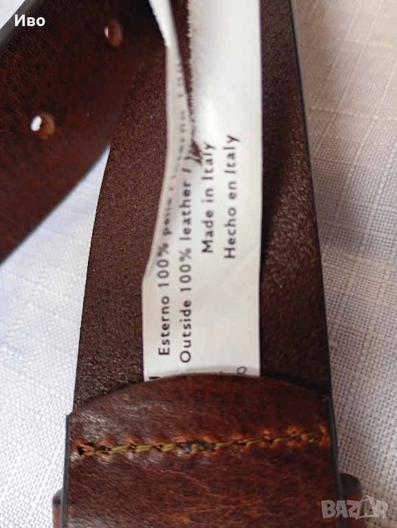 Колан Benetton, естествена кожа - Нов, с етикет. Произведен в Италия. Цвят тъмно кафяв. Широчина 3,5 см. дължина на колана 114 см без катарамата. Цена 45 EUR.