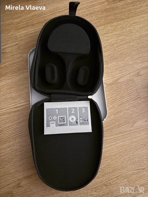 Продавам безжични слушалки Sony WH-1000XM5, черен цвят, с активна шумоизолация (ANC) и оригинален твърд калъф.
