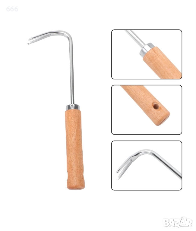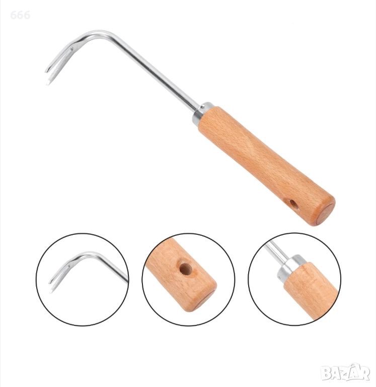 Материал: ножът за плевели с дръжка е изработен от неръждаема стомана и дървена дръжка, е издръжлив, с компактен дизайн.