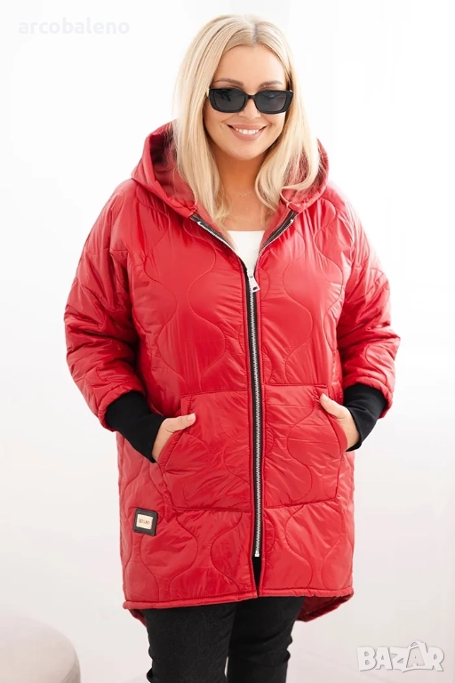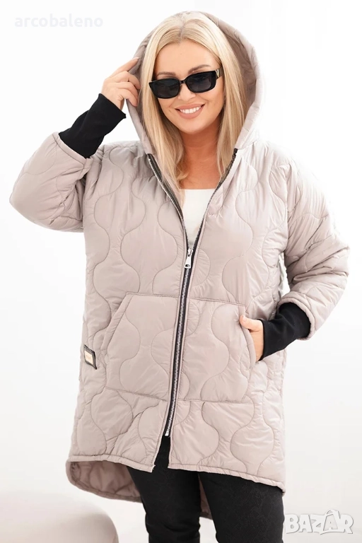 Дамско преходно яке Plus Size, ватирано с качулка, 10цвята