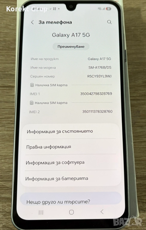 - Батерия : 5000 mAh — издържа цял ден при активна употреба