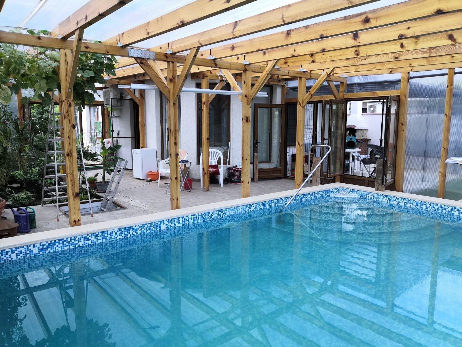 Предлагаме ви изключителна възможност да закупите къща в красивия крайбрежен град Балчик. Тази двуетажна къща предлага несравним комфорт и стил, съчетани с гледка към морето. Характеристики: С жилищна площ от 83 кв.м. и парцел от 377 кв.м., тя съчетава елегантност и функционалност на брега на Черно море. Приземният етаж се състои от комбинирана всекидневна и кухня, баня с душ и складово помещение. Има и стая за гости с кухненски бокс и баня с душ, както и отделен вход. От кухнята за хранене се влиза в зимната градина (25 кв.м.) с екзотични растения, която води до басейн с площ 58 кв.м. На разположение е и покрита тераса, както и навес за кола на входа на имота. Горният етаж предлага две спални, достъпни през централен коридор. Има и модерна баня и балкон с изглед към Балчишкия залив и морето. Имотът се намира в жилищен район и предлага спокойна и хармонична атмосфера. Само на 5 минути от морето, той все още осигурява бърз достъп до основните удобства на града, като супермаркети, училища, аптеки, болница, пристанището, крайбрежна алея с множество ресторанти, ботаническа градина, летния дворец на бившата румънска кралица и много други. На около 40 км от летище Варна.