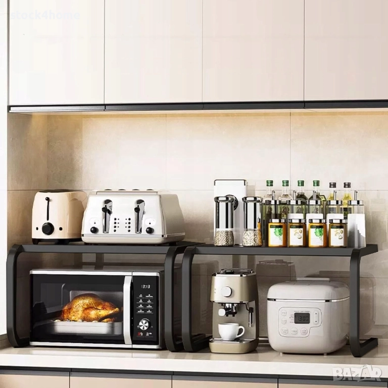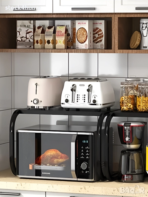 Изберете функционалност и стил за вашата кухня. Тази модерна стойка за микровълнова печка не само осигурява солидна опора за вашите уреди, но и ви помага да организирате по-добре пространството си. Перфектният избор за кухнята, офиса или навсякъде, където ергономичността и естетиката са от значение.