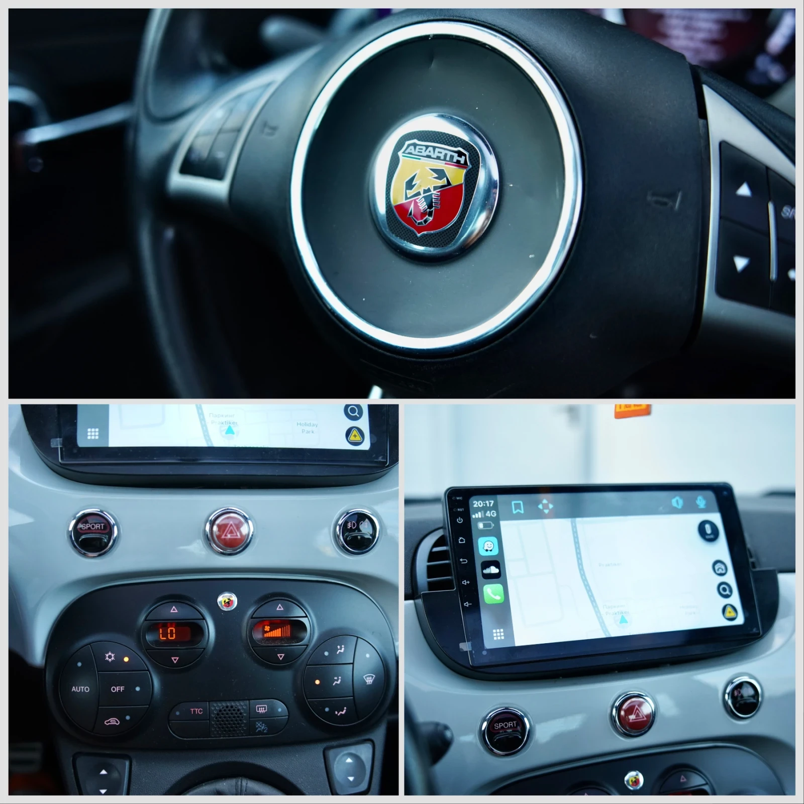 Абартчето е в перфектно техническо и визуално състояние, няма никакви предстоящи ремонти! Модификация 595 Turismo. 1. 4 Турбо 160к. с , разполага с блокаж на предния диференциал. На реални доказуеми километри , без удъри! Разполага с: *Оригинални джанти Abarth 16" с Гуми Toyo Proxess T1R *Работеща панорама на покрива *Карплей/Андройд ауто Навигация *Предни дискове и накладки - нови *Обслужен с наскоро с масло Bardahl 10w50 *Оригинални стелки 595 turismo *Генерация Magnet Marelli